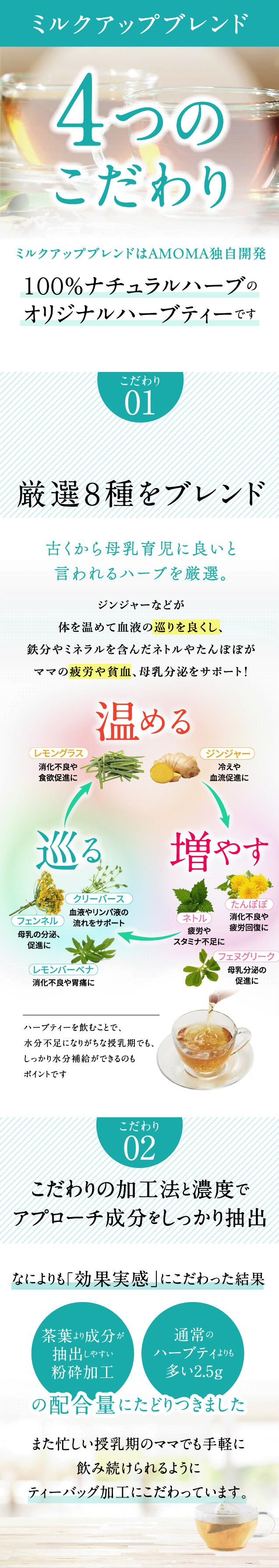 AMOMA(アモーマ) ミルクアップブレンド 5袋セット(30ティーバッグ×5袋)完母を目指すママ・母乳育児のために。母乳ハーブティーで母乳実感。