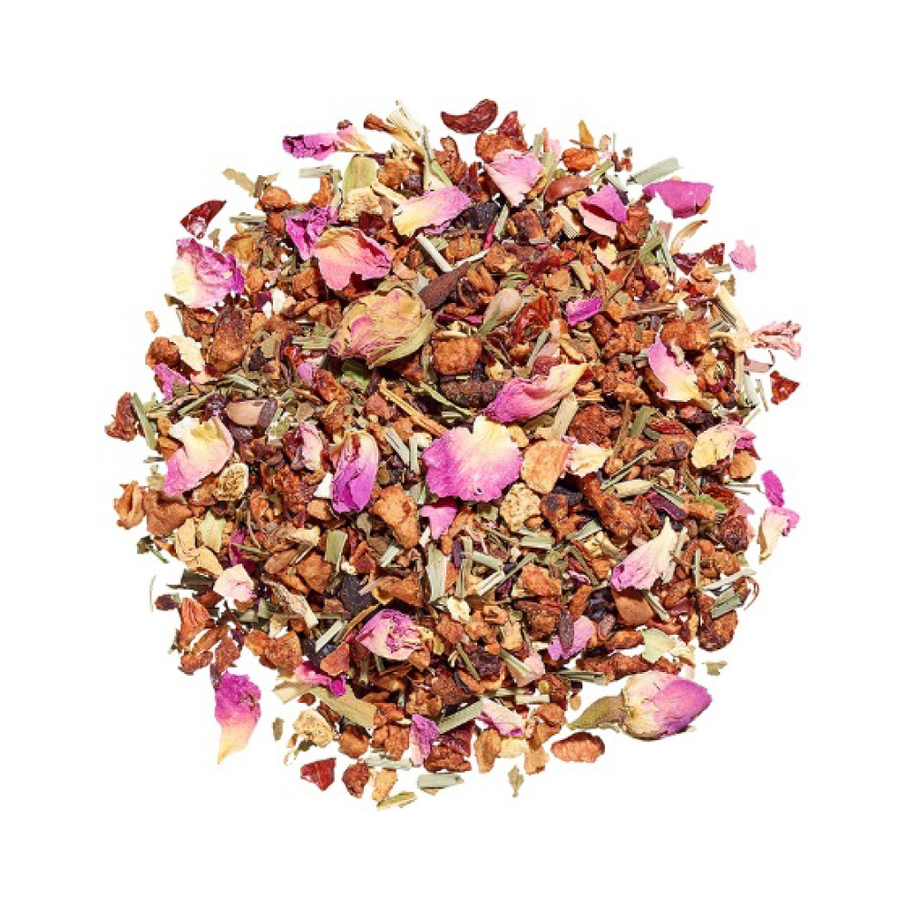 リンゴ、ローズヒップピール、スイートブラックベリーの葉、レモンピール、チコリの根のロースト、レモングラス、ハイビスカス、バラの花びら/酸味料(クエン酸)、香料