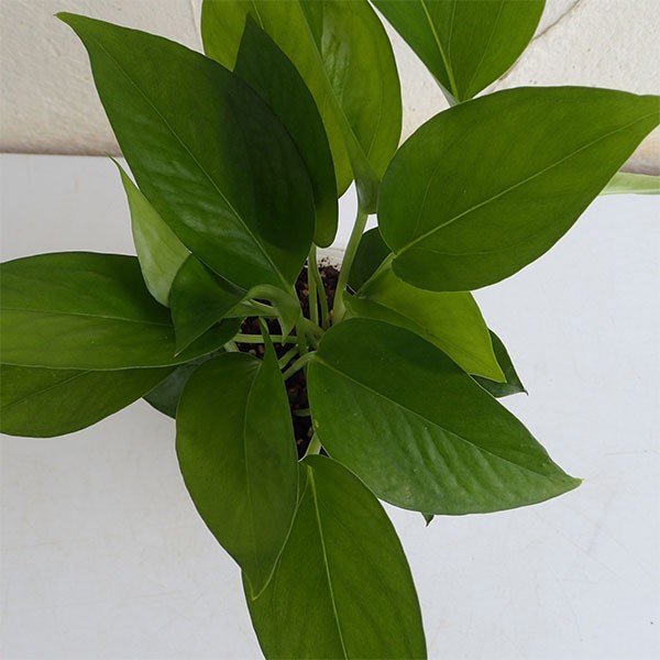 実は作るのが難しい!斑入りのポトスから変異して、斑が全くでない株を選りすぐり選抜した、正にパーフェクトグリーンです。つやのある濃緑色のイキイキとした葉が新鮮!存在感のあるポトスです。育てやすさは通常のポトスと変わりません。吊鉢仕立てにするのもおすすめです。