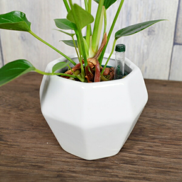 アンスリウム 根上り 陶器鉢 モノトーン 60 水位計付き セット ハイドロカルチャー 観葉植物 ミニ観葉 赤 気根