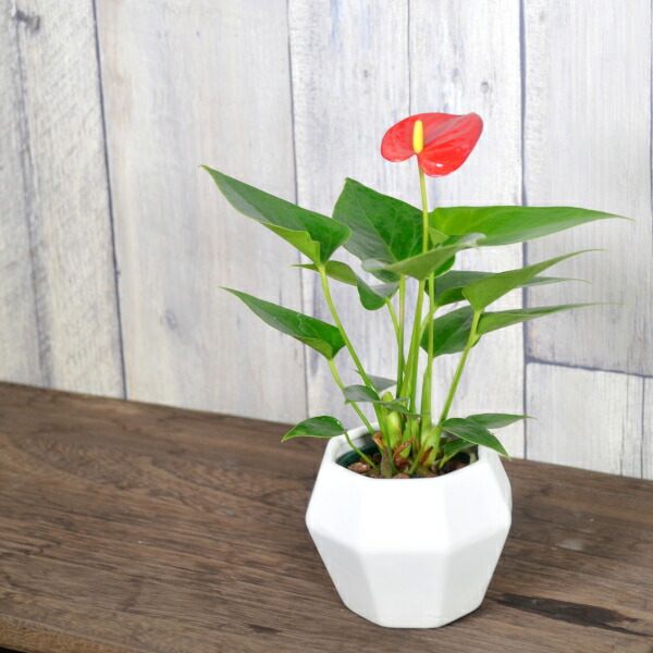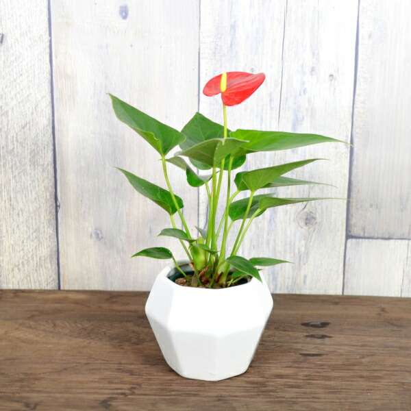 根上がりアンスリウムと陶器鉢がセットになった商品です