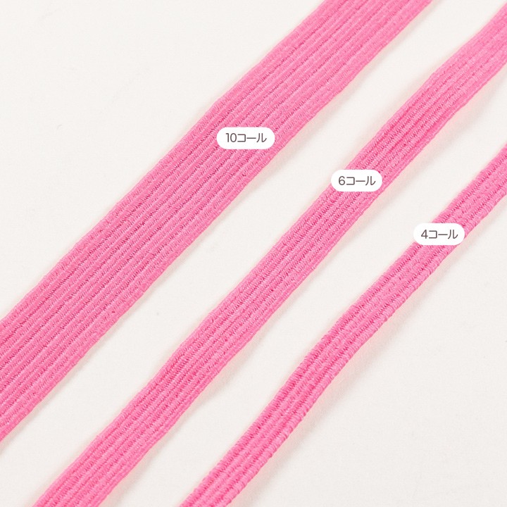 ライクラ(R)が使用されている10コールのカラーゴムです。