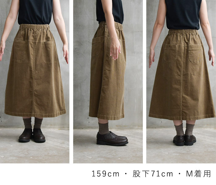 「いろいろコーデュロイ」ストレッチ前ポケット台形スカート