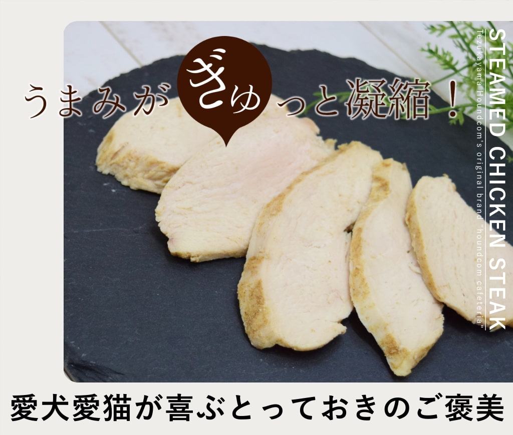 犬 おやつ 猫 ドッグフード ペットフード ウェット 消化に良い 鶏肉 手作り しっとり蒸し鶏ステーキ 200g ハウンドカム食堂 冷凍便