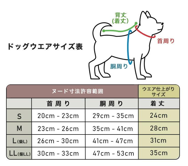 RADICAでは全てのお洋服が、ワンちゃんにお洋服を着せない裸の寸法(ヌード寸法)でのご案内となっています。