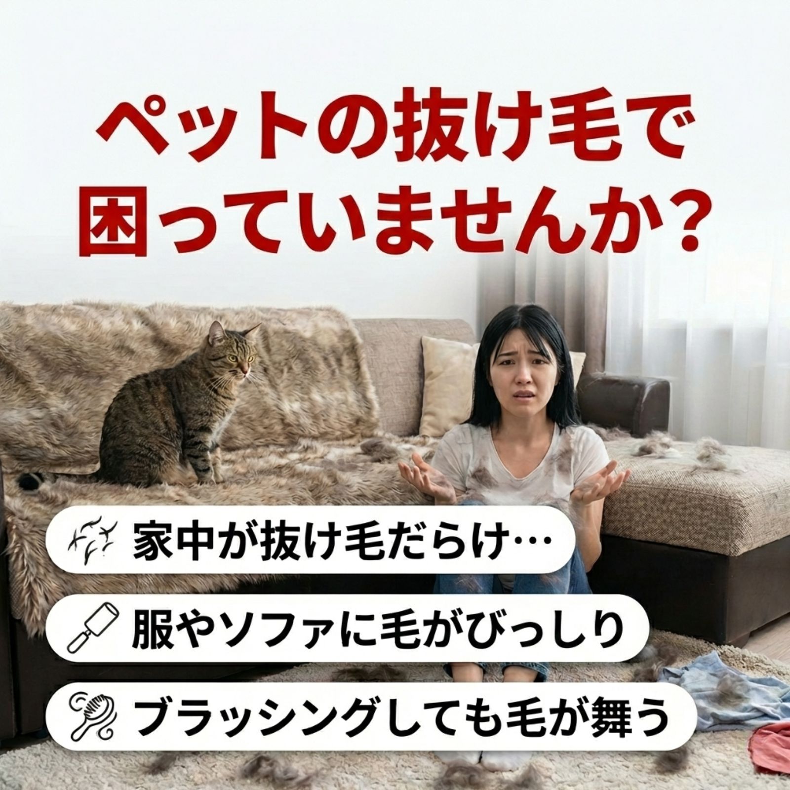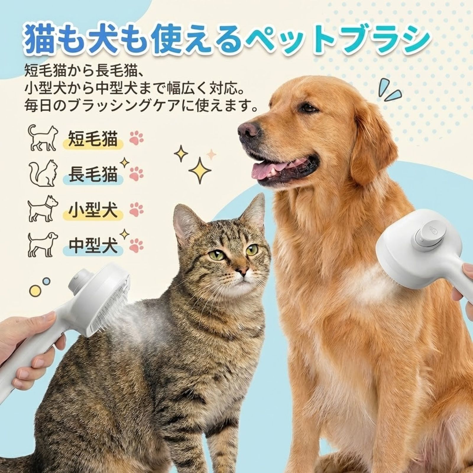 ミストの力で「舞う毛」をゼロへ。ブラッシングの悩みをこれ1本で解決するミスト付きペットブラシです。