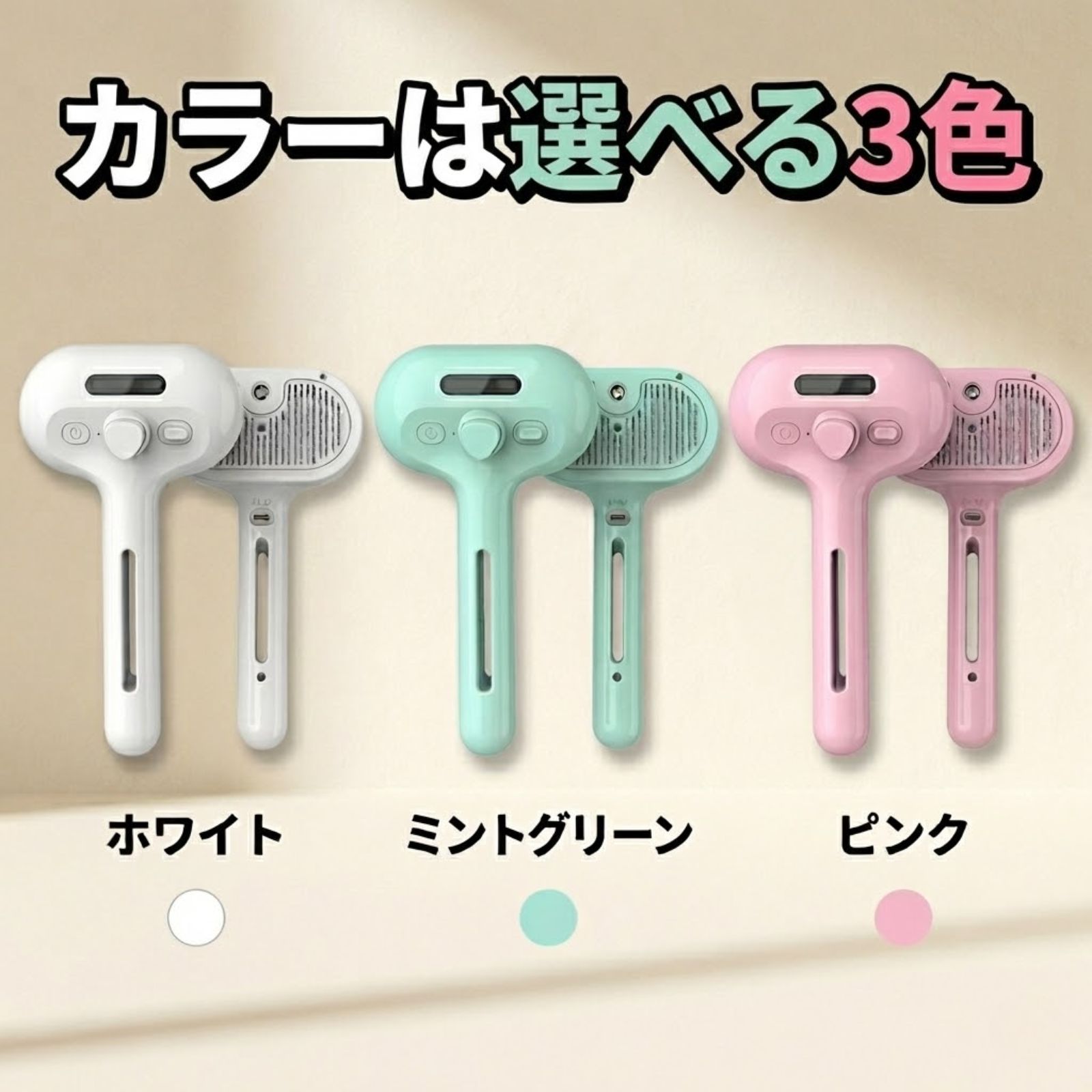 ペットブラシ ミスト付 猫 犬 抜け毛取り ワンタッチ マッサージ 抜け毛除去 ブラッシング 浮き毛 毛取り 除毛 Type-C充電 軽量 147g ホワイト グリーン ピンク