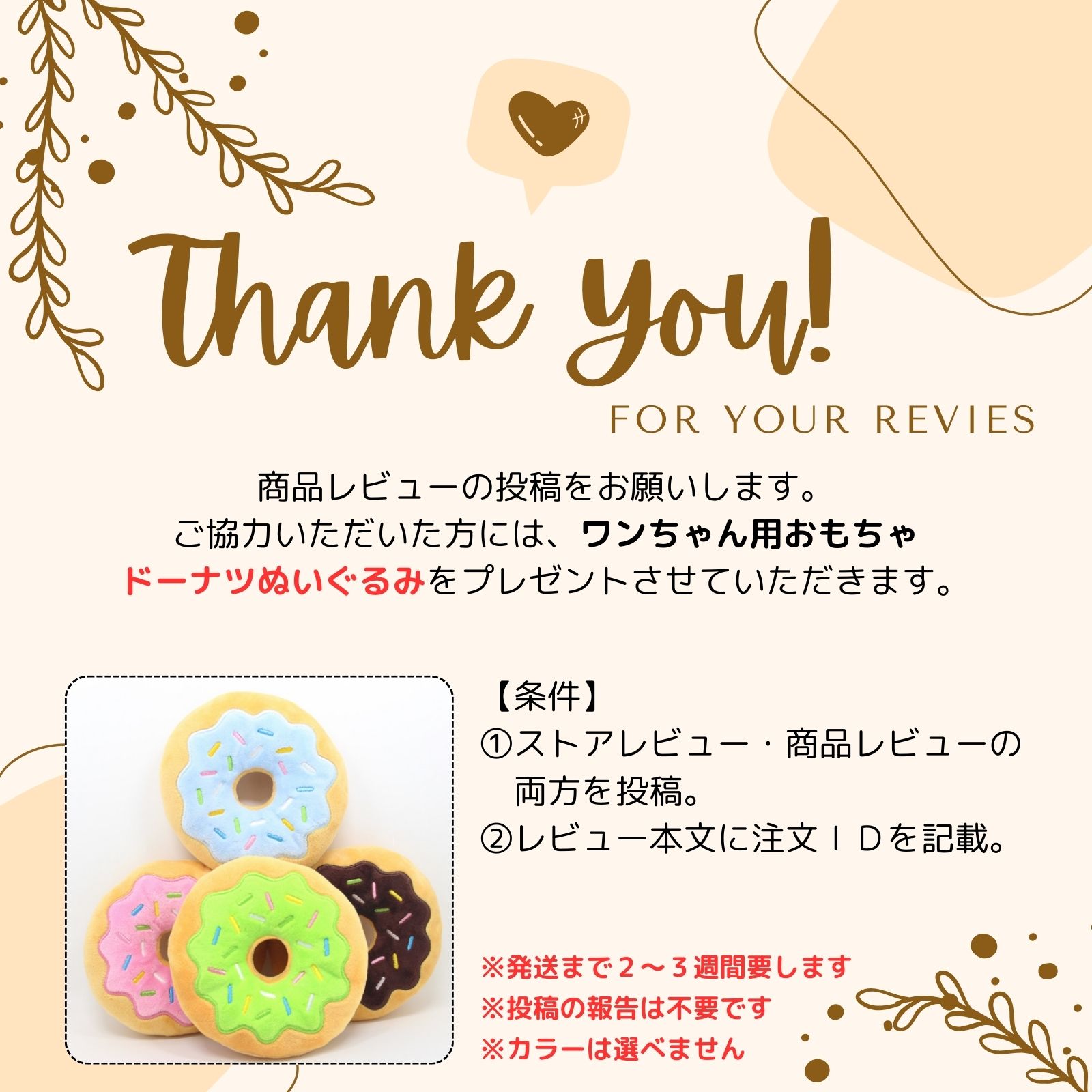 今なら商品到着後のレビュー投稿で「ドーナツぬいぐるみ」をプレゼント中!愛猫・愛犬へのギフトにも最適です。詳細は画像をご確認ください。