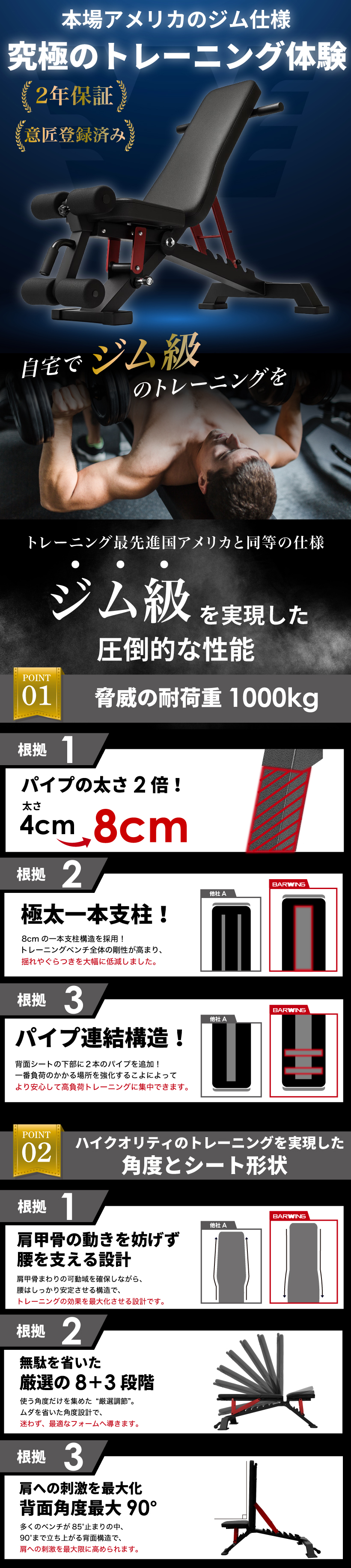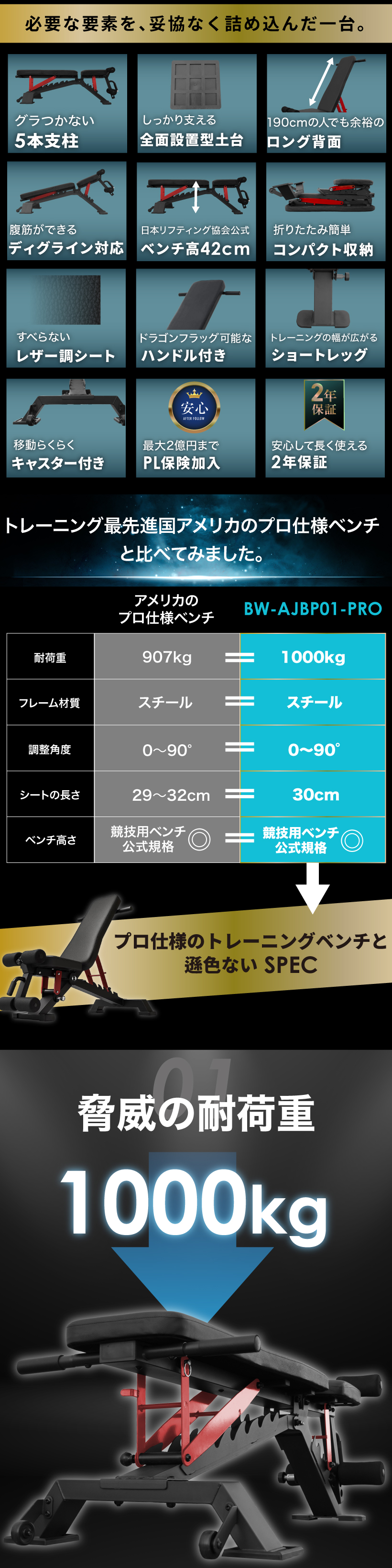 3WAY トレーニングベンチ プロモデル インクラインベンチ フラットベンチ ダンベル 耐荷重1000kgトレーニング ベンチ ベンチプレス ベンチプレス台 ホームジム トレーニングマシン 折りたたみ 筋トレ 自宅 腹筋 コンパクト 角度調整