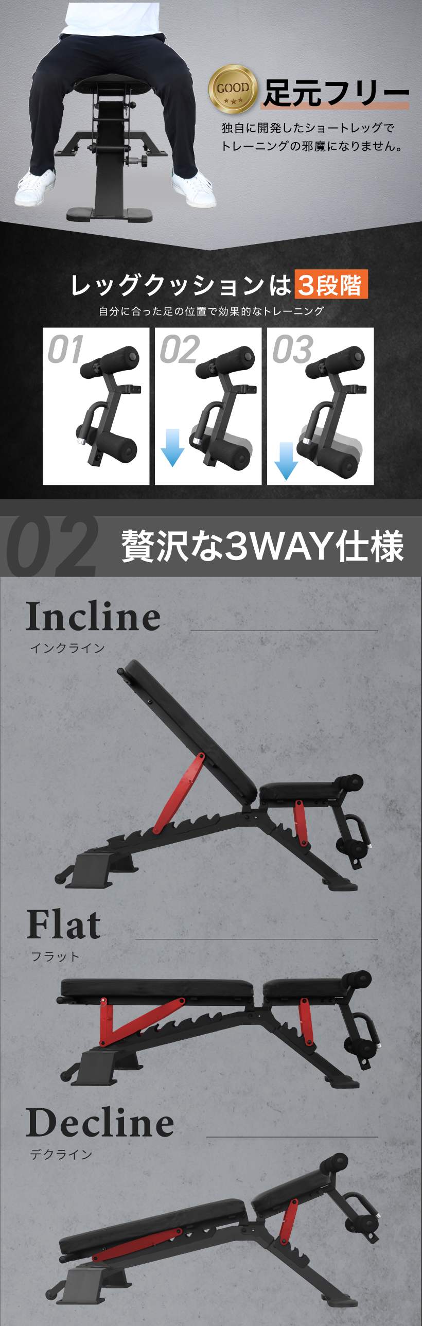 3WAY トレーニングベンチ インクラインベンチ フラットベンチ
