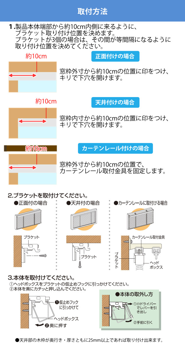 ※取り付け可能なカーテンレールはC型、角型の金属製レールになります。