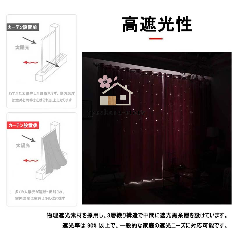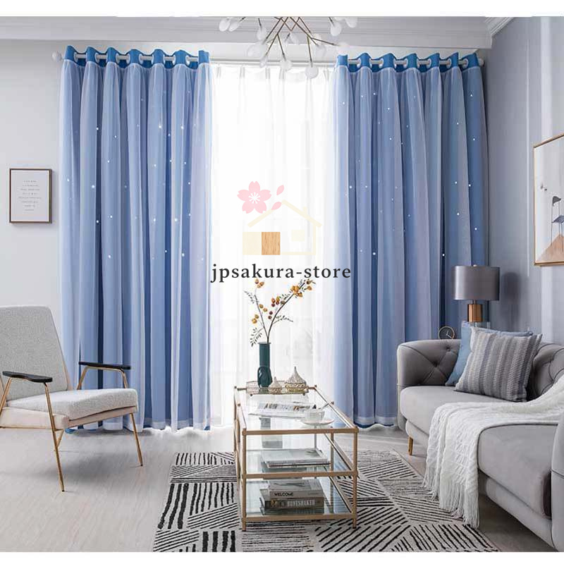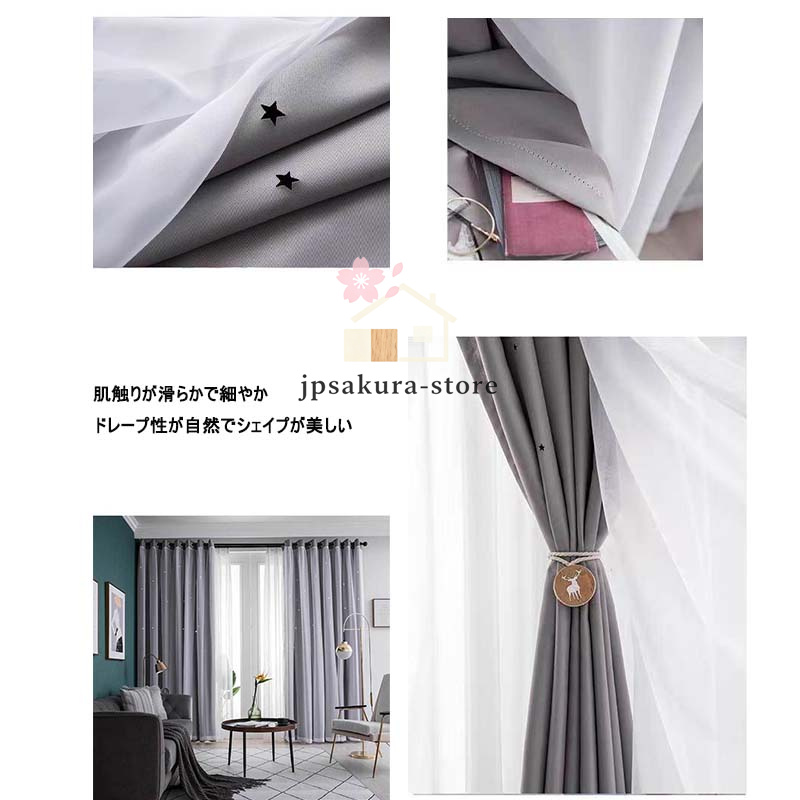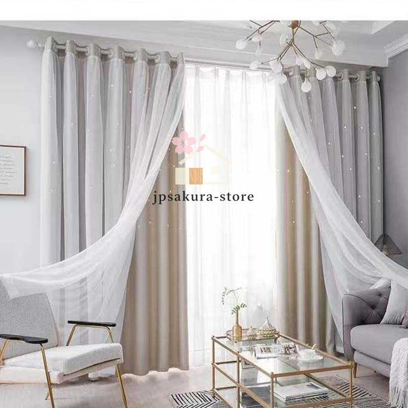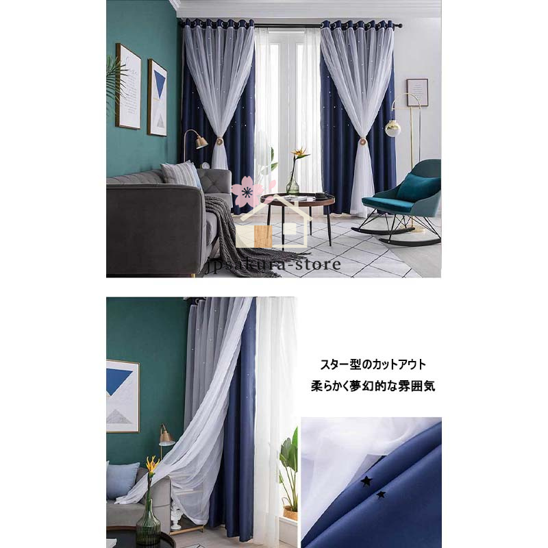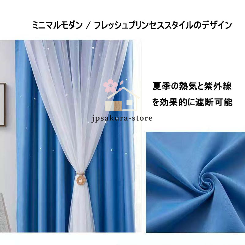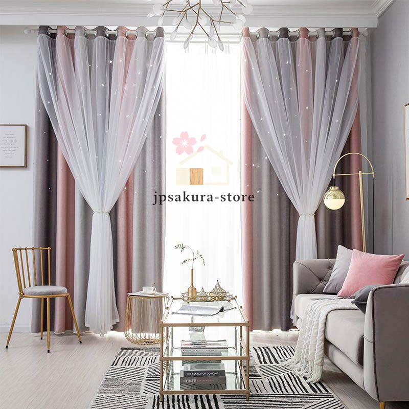 カーテン 二重 レース 一体型 姫系 フックカーテン 遮光 断熱 防音 チュール プライバシー保護 おしゃれ ピンク スター 丈直し 安い オーダーカーテン 穴あけ