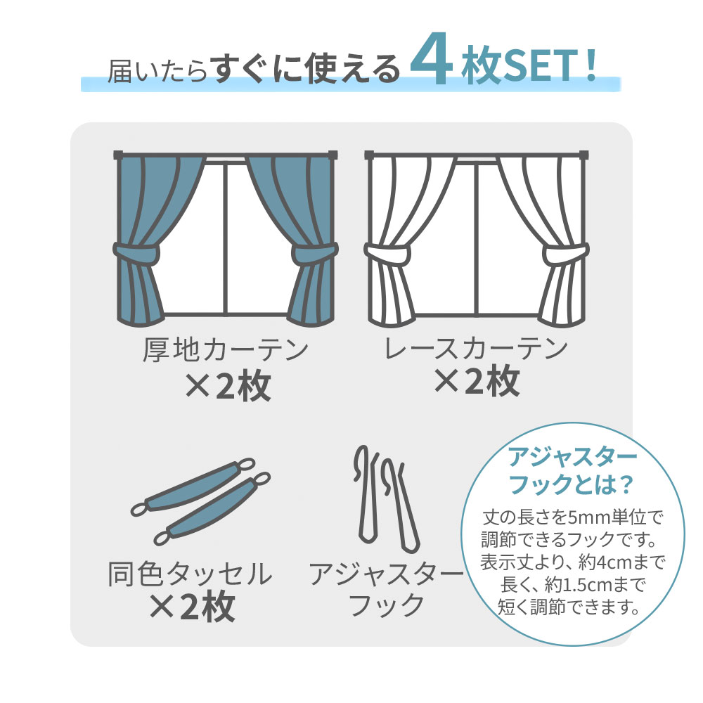カーテン 4枚セット 遮光 100% リターン仕様 遮光性 防音 断熱 保温 遮光カーテン 4枚セット おしゃれ 北欧 シンプル 幅100 レース 厚地 厚手 洗える