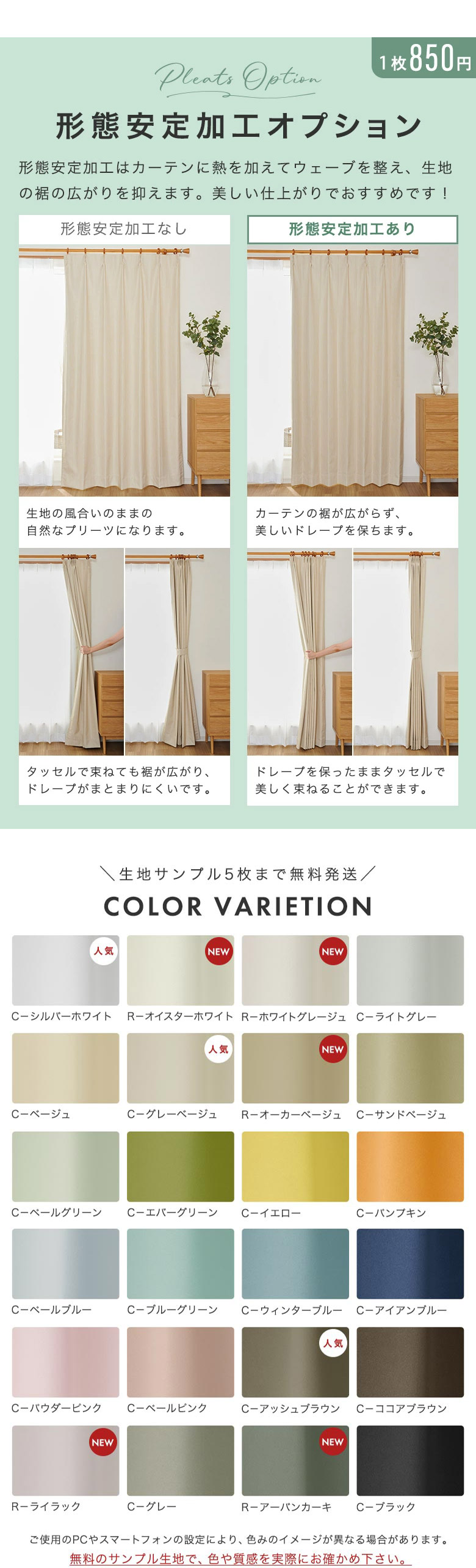 ※カーテンの生地サンプルはお1人様1種類1枚(合計5枚)までとなっております。