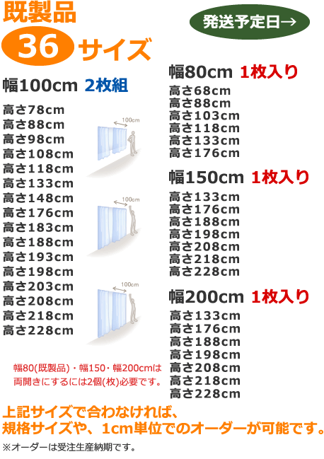 巾100x高さ78・88・98・108・118・133・148・176・183・188・193・198・203・208・218・228cm