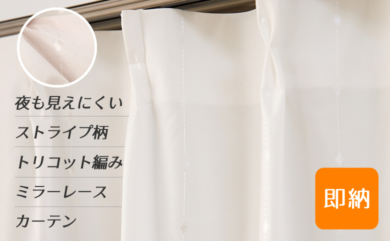 夜、電気を点けても外から見えにくいレースカーテンです。そのかわり、室内からも外が見えにくくなっています。環境によって透ける場合もございますので、予めご了承下さい。