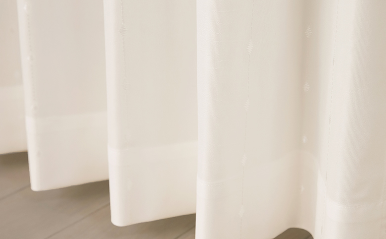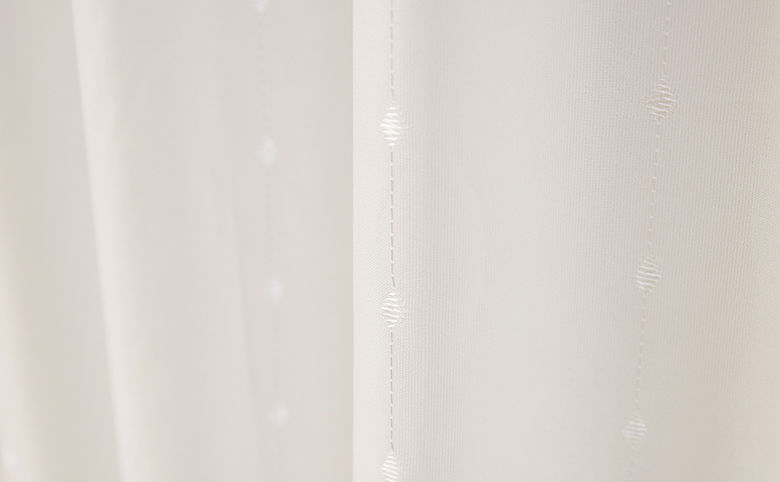 トリコット編みのレースカーテンです。やわらかでなめらかな手触りが特徴です。