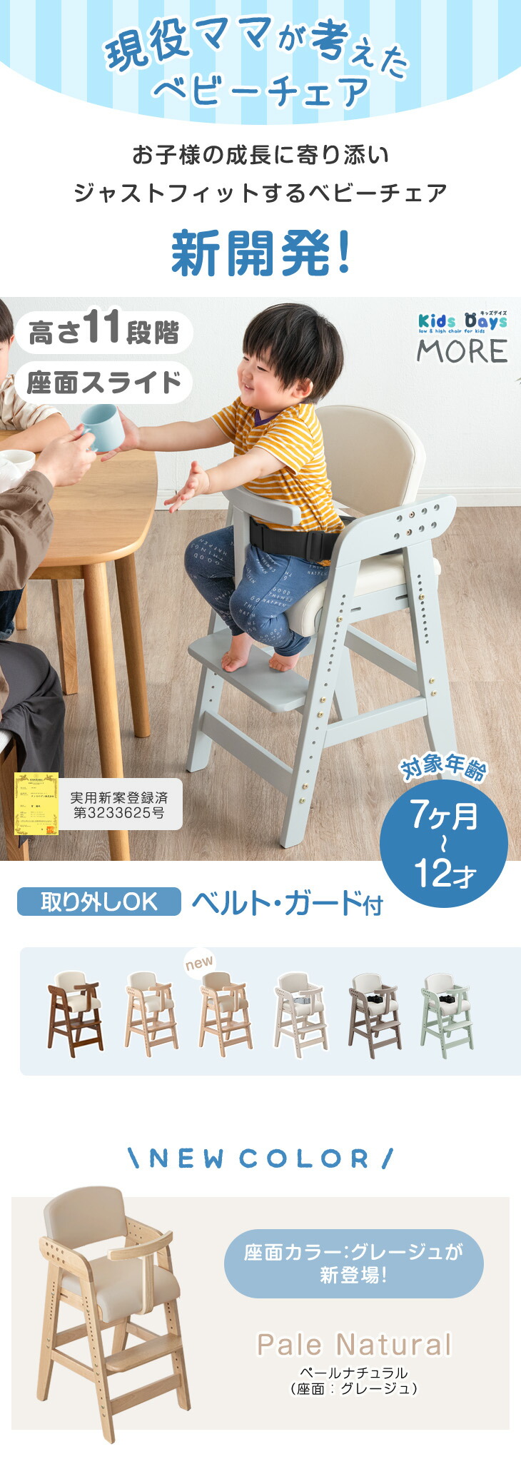 ※使用開始時期の「生後7か月」は目安の時期です。一人でも座ることができるようになってから使用を開始してください。