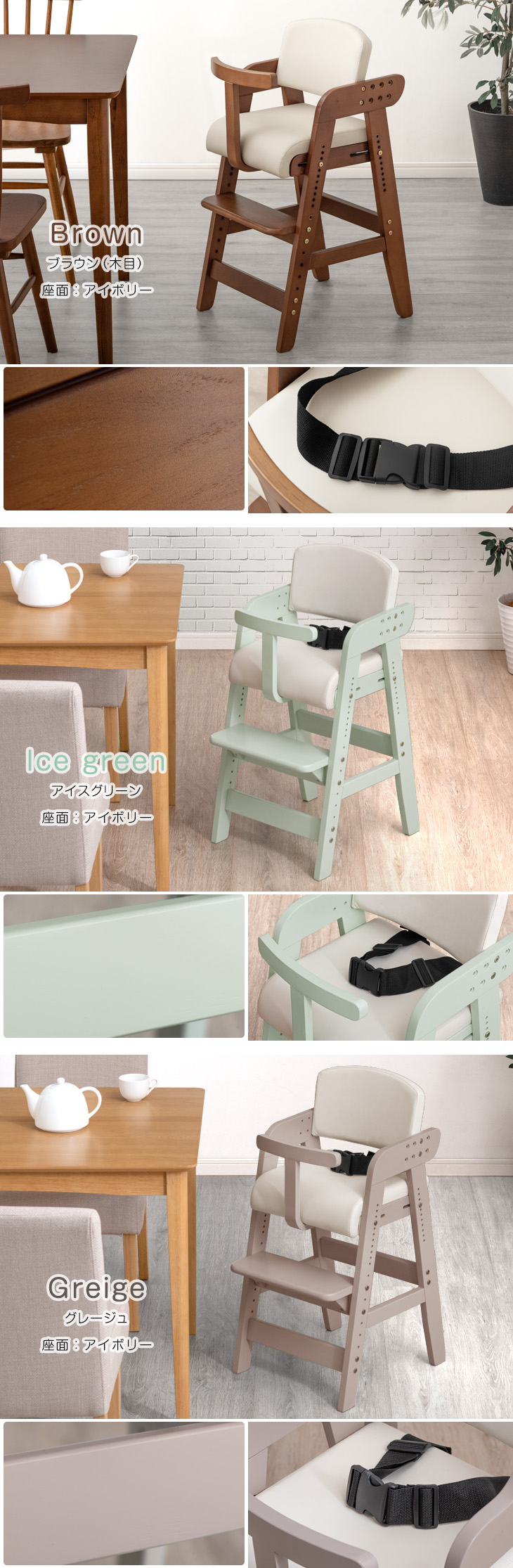 ベビーチェア ハイチェア 木製 ベルト キッズチェア おしゃれ