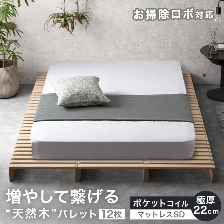 すのこベッド パレットベッド セミダブル ダブル すのこ ベッドフレーム セミダブルベッド ダブルベッド パレット ベッド 12枚