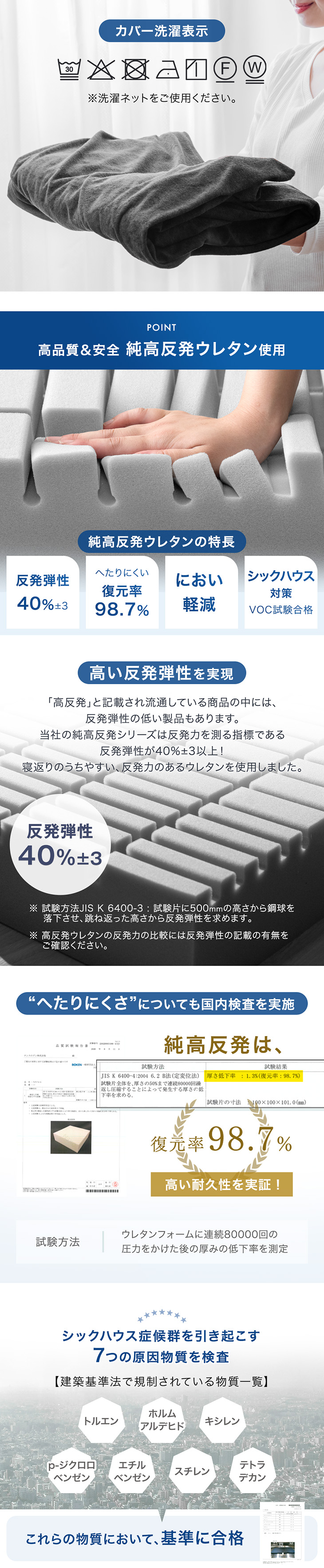 高反発ウレタンフォーム(反発弾性:40%±3%)