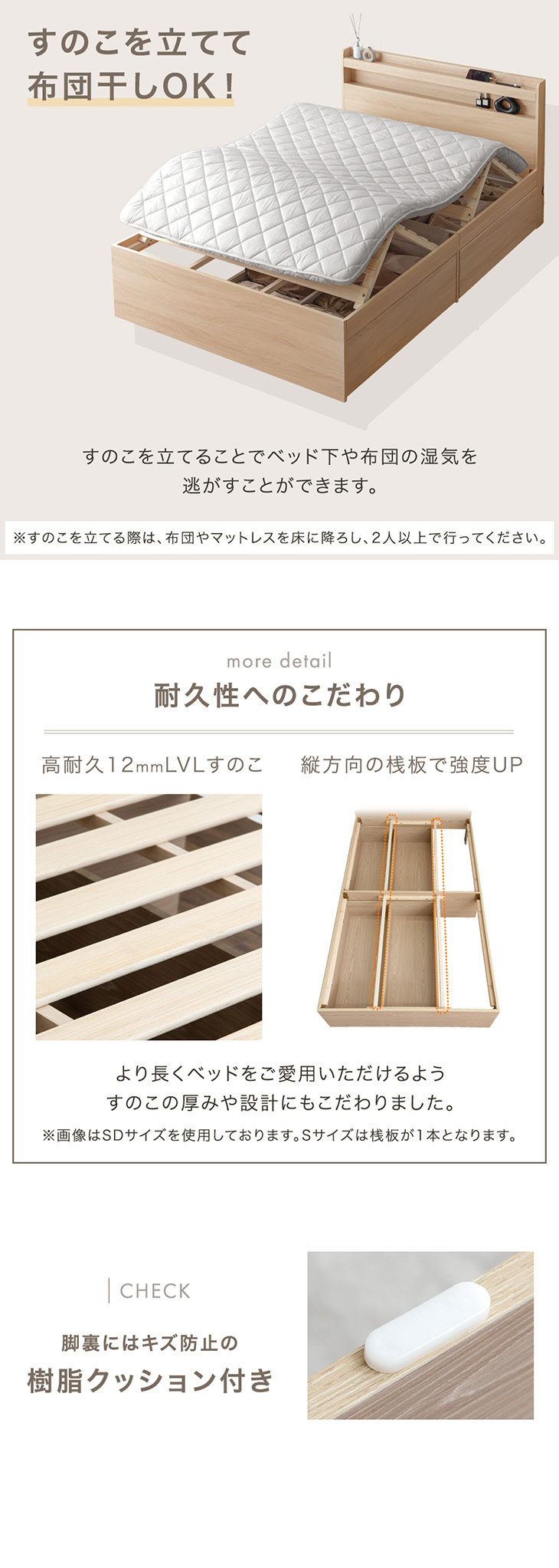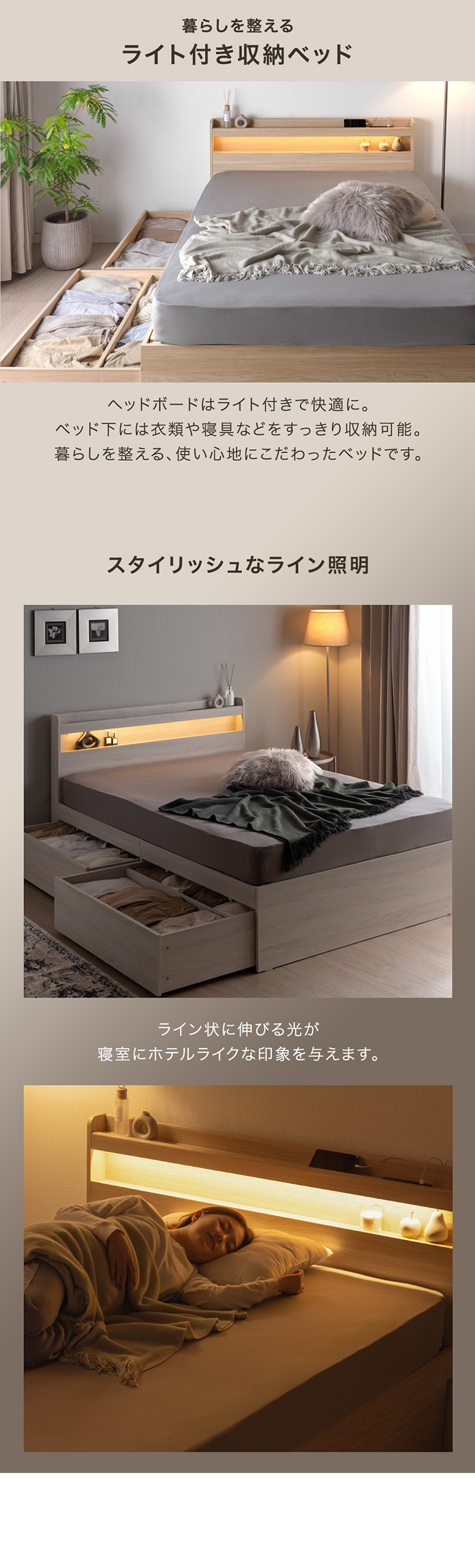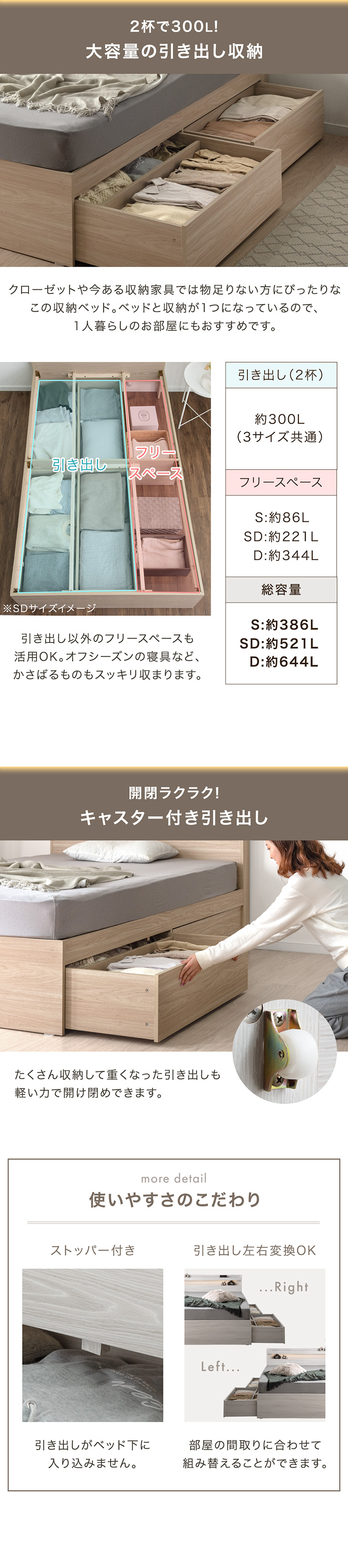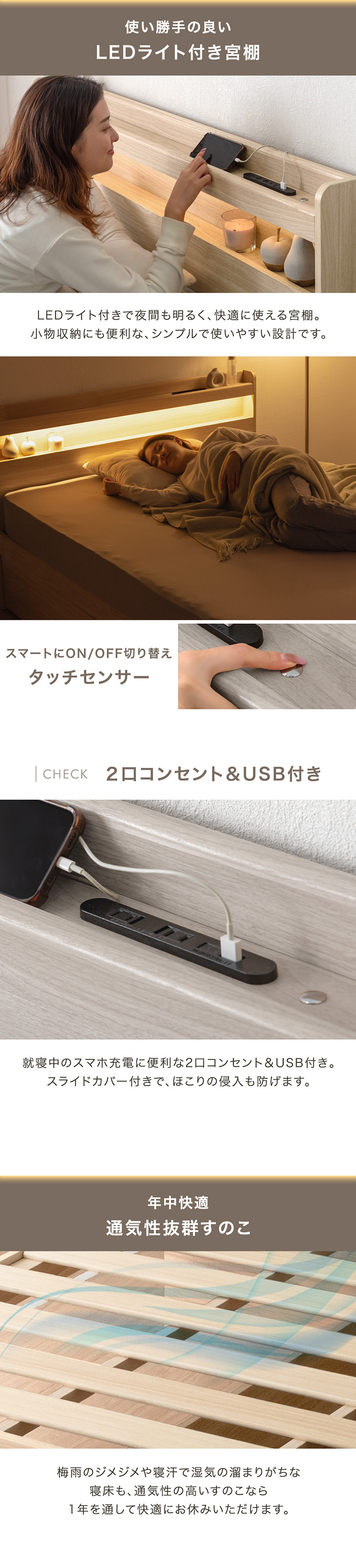 ベッド 収納 すのこ 引き出し 宮付き 大容量 コンセント usb