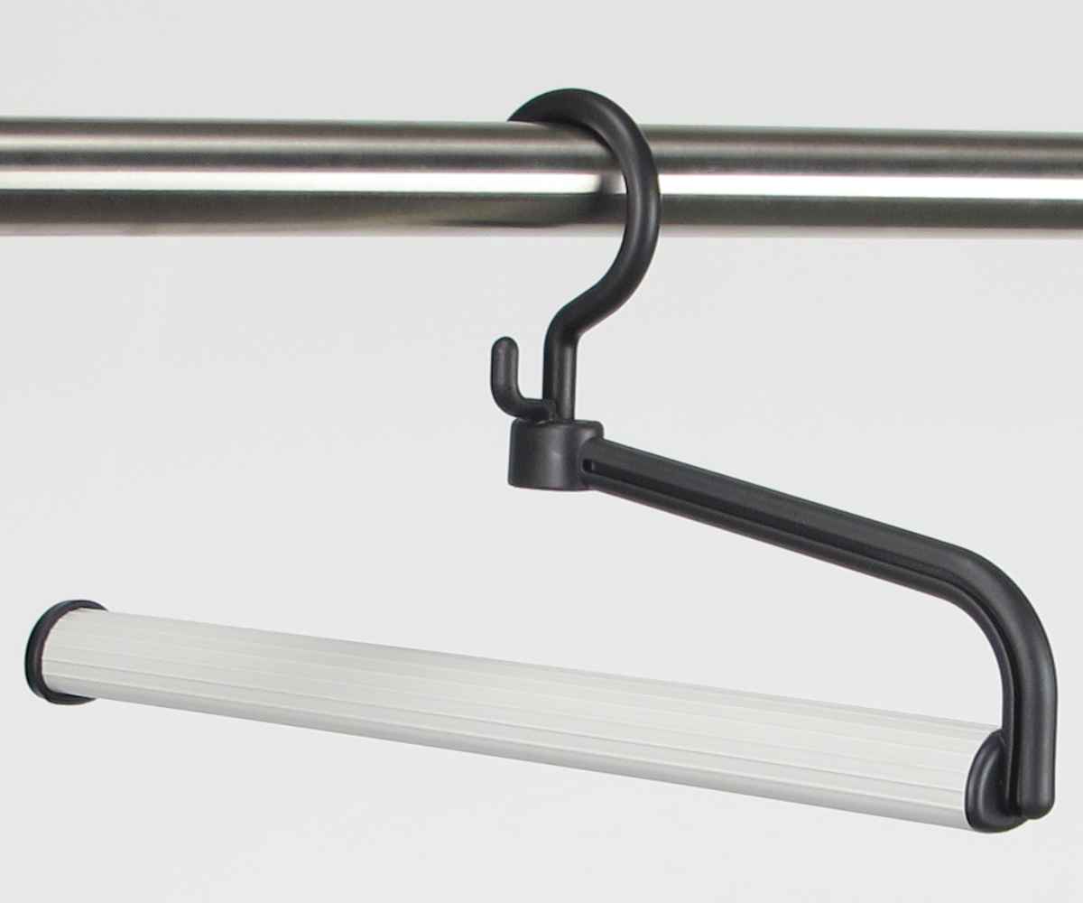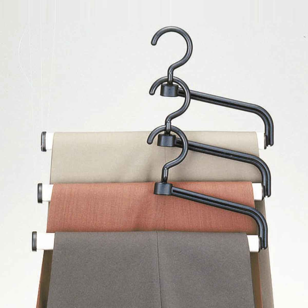 連結用のフック付きで、連結するとスカートやパンツなどを重ね吊りできるので、限られた省スペースにもスリムに収納できます。またフックは360度回転するので、自由に向きを変えられるのも嬉しいポイントです。