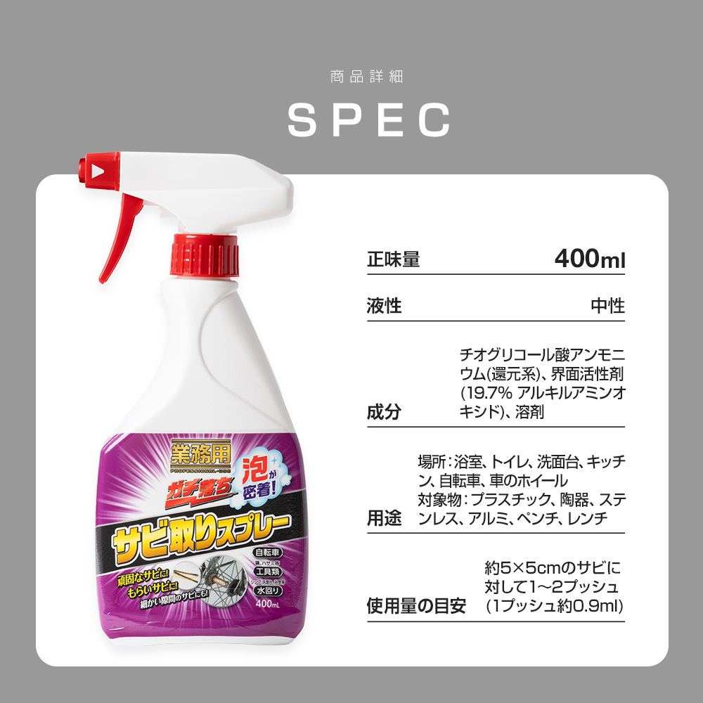 業務用 サビ取りスプレー サビ落とし 180ml 鉄錆 鉄サビ サビ汚れ サビ除去 洗剤 スプレータイプ 錆取り 日本製 もらいサビ 掃除 洗浄剤 自転車 工具 刃物 浴室