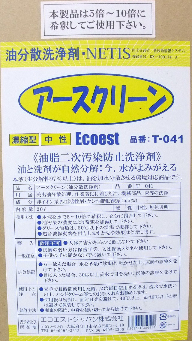 ※平成23年度より油処理の最終洗浄剤として国土交通省 新技術情報システム「NETIS」に登録されました。「NETIS登録番号 KK−100114−A」