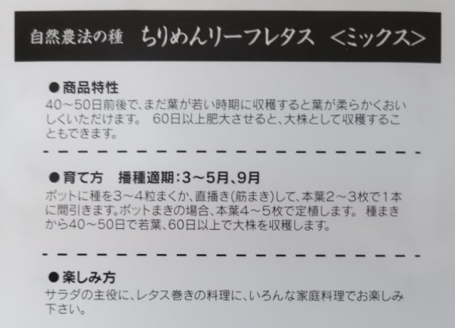 *発芽率の有効期間がありますが、冷蔵庫で保管すると、やや発芽率は落ちますが翌年以降も種まき可能です。