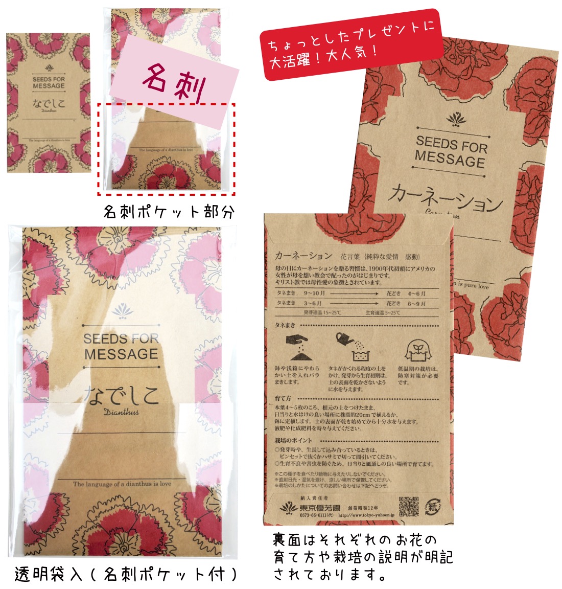 名刺ポケット付 花の種プチギフト 母の日 ホワイトデー バレンタインデー 景品 粗品 ギフト プチギフト 記念品 ノベルティー イベント プレゼント 店舗