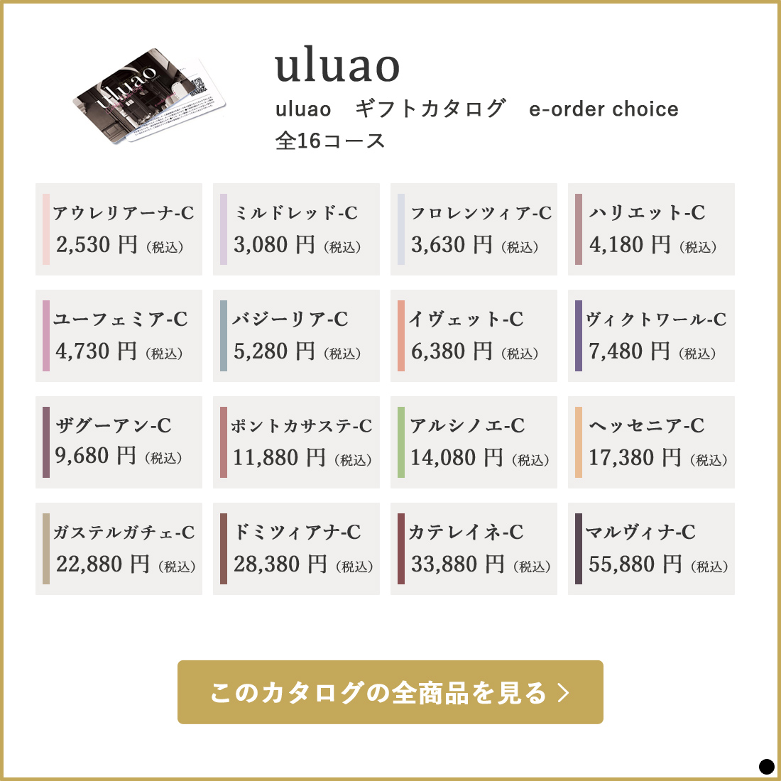 カタログギフト カードカタログ ギフトカタログ 香典返し 出産内祝い 結婚内祝い 内祝い 贈り物 返礼品 uluao(ウルアオ) e-order choice<アウレリアーナ>
