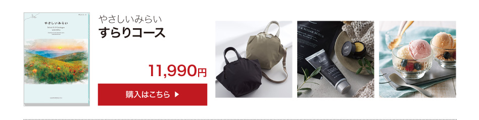 業界初!SDGsコンセプトのサステナブルなカタログギフト「やさしいみらい(すらりコース)」のご紹介ページです。