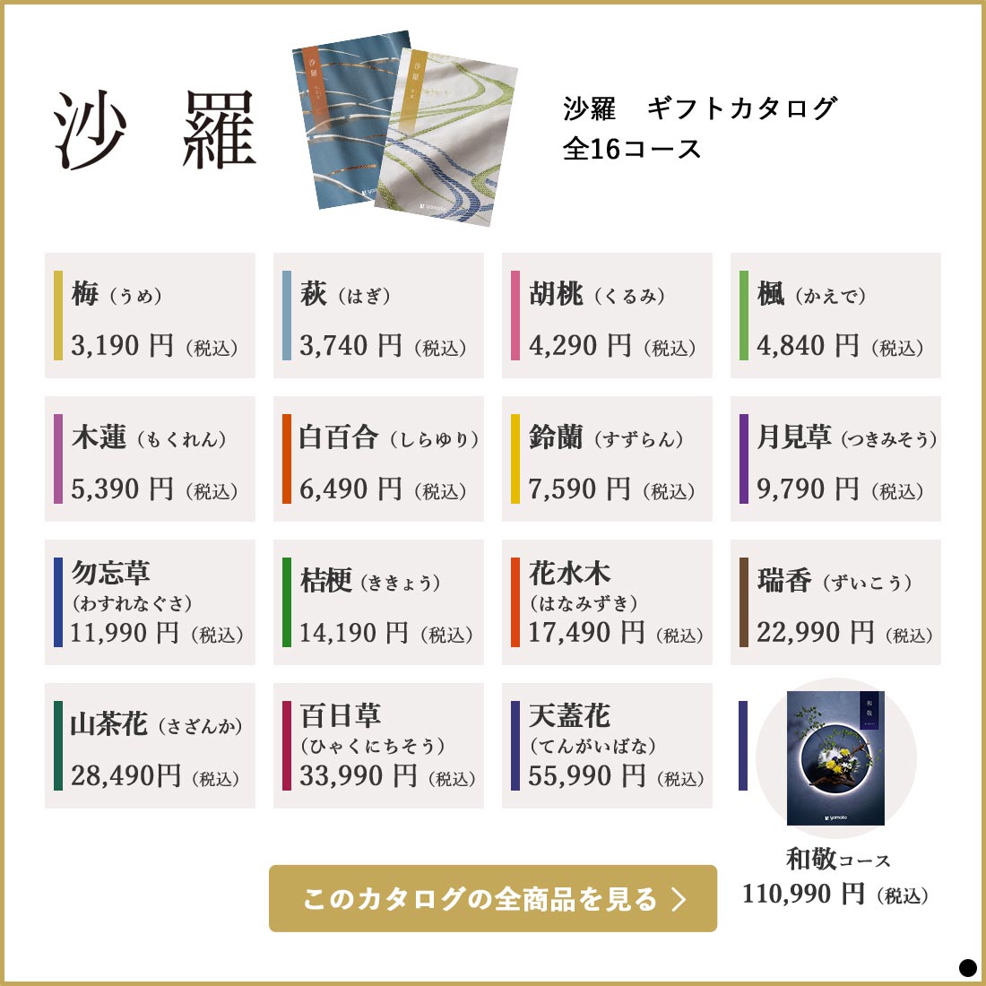 大切な方への心を込めた贈り物を。総合版ギフトカタログ『沙羅』