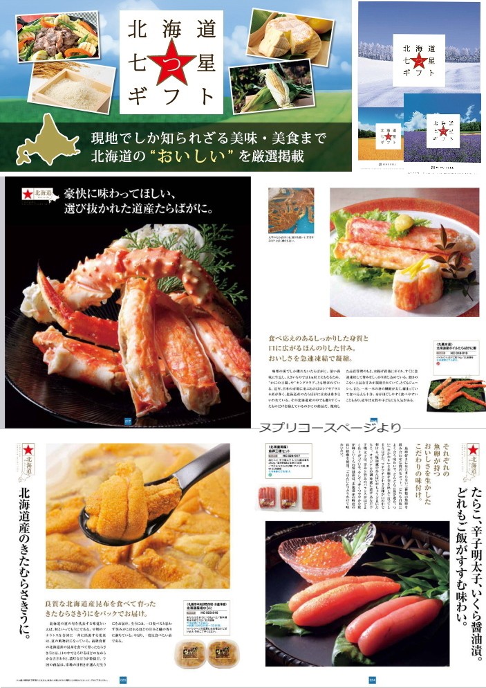 [5,000円コース] 商品5,000円(システム料込) 全国で人気の北海道ブランド。そのかくれた逸品を発掘し、生産者の顔、こだわり、想い、産地の特徴など、ブランドの背景にあるストーリーを語りながら届けるギフト。それが「北海道七つ星ギフト」です。ご好評をいただき、充実のラインナップ・ワイド版で登場しました。全国の物産展でも絶大な人気を誇る、北海道の食の決定版です。【商品内容】 ●掲載点数:約100点