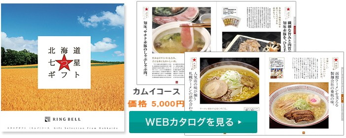 リンベルカタログギフト北海道 7つ星 「カムイ」 [5,000円コース] 商品5,000円(システム料込) 全国で人気の北海道ブランド。そのかくれた逸品を発掘し、生産者の顔、こだわり、想い、産地の特徴など、ブランドの背景にあるストーリーを語りながら届けるギフト。それが「北海道七つ星ギフト」です。ご好評をいただき、充実のラインナップ・ワイド版で登場しました。全国の物産展でも絶大な人気を誇る、北海道の食の決定版です。【商品内容】 ●掲載点数:約100点