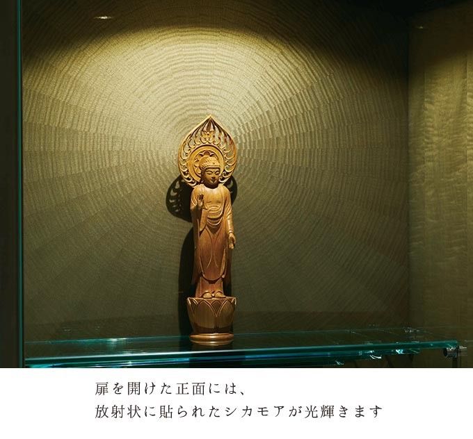 高価なシカモア材、高度なガラス技術を用いてつくられたお仏壇。