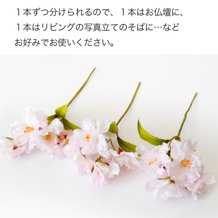 桜の香りの線香・ろうそくと、きれいな桜の造花をセットにしてお届けします。