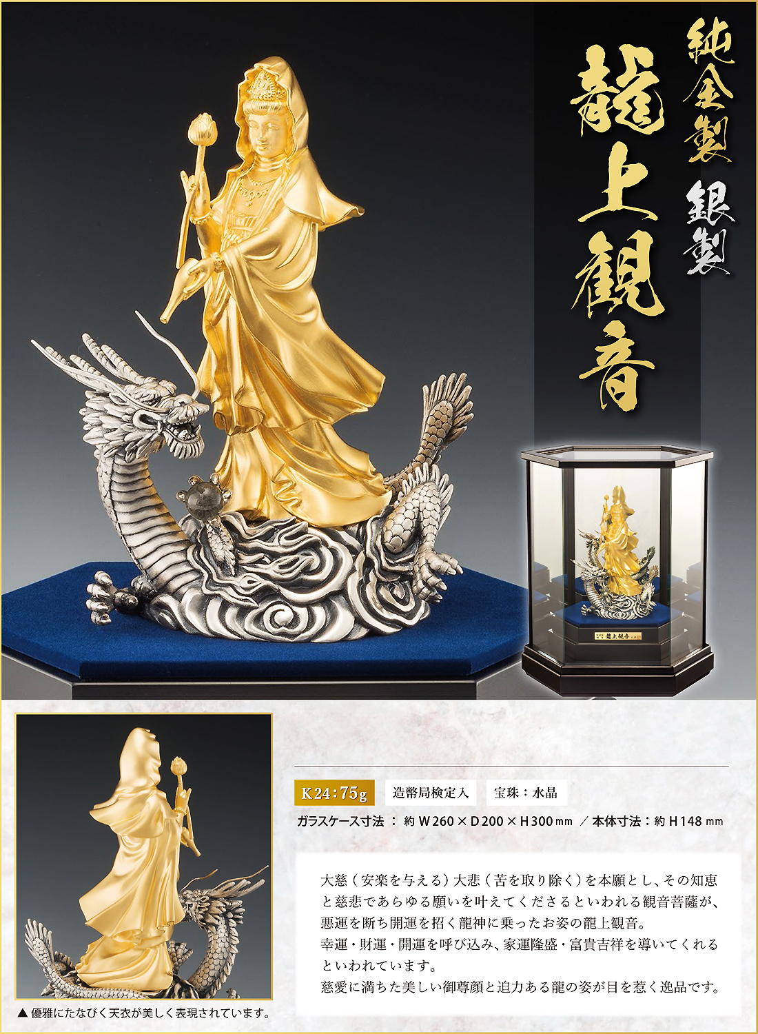 【材 質】本体:24金製 龍:銀製 宝珠:水晶