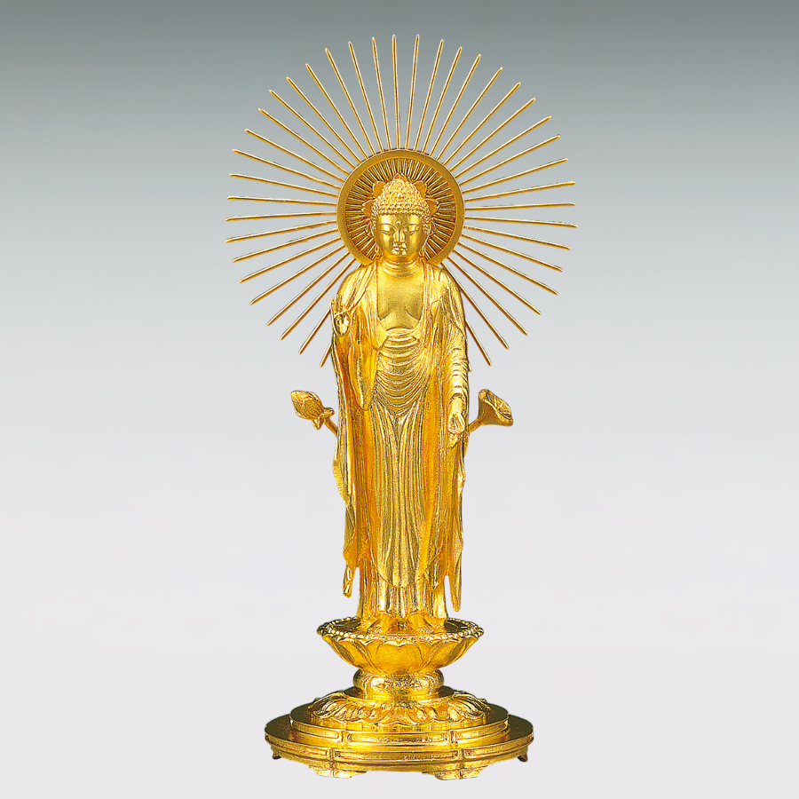 仏像「阿弥陀如来 御東光背」の純金製品です。