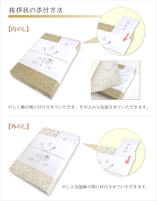 ※サイズの小さい商品は、挨拶状が熨斗で隠れてしまう場合がございますので