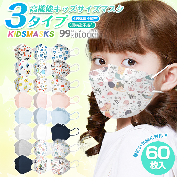 子ども 不織布マスク 3D立体60枚 使い捨てマスク