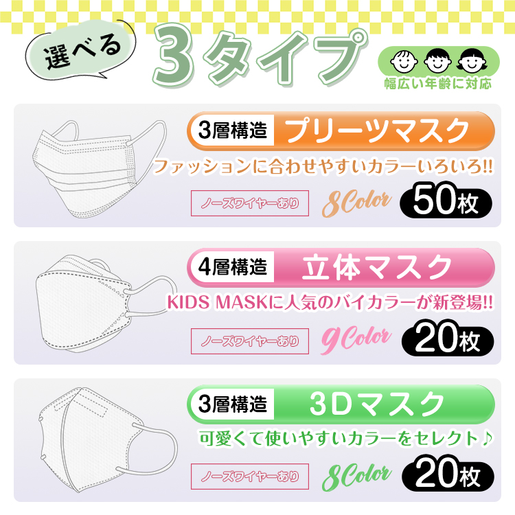 マスク キッズマスク 子供マスク プリーツ 3D 立体 20枚 50枚 小さめ 平ゴム 感染対策 BFE VFE PFE 99%以上カット かわいい 柄 ny494