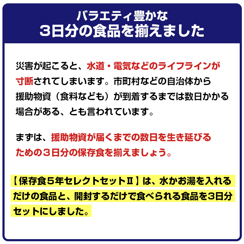 非常食を約3日分セットにした 保存食5年セレクトセットII