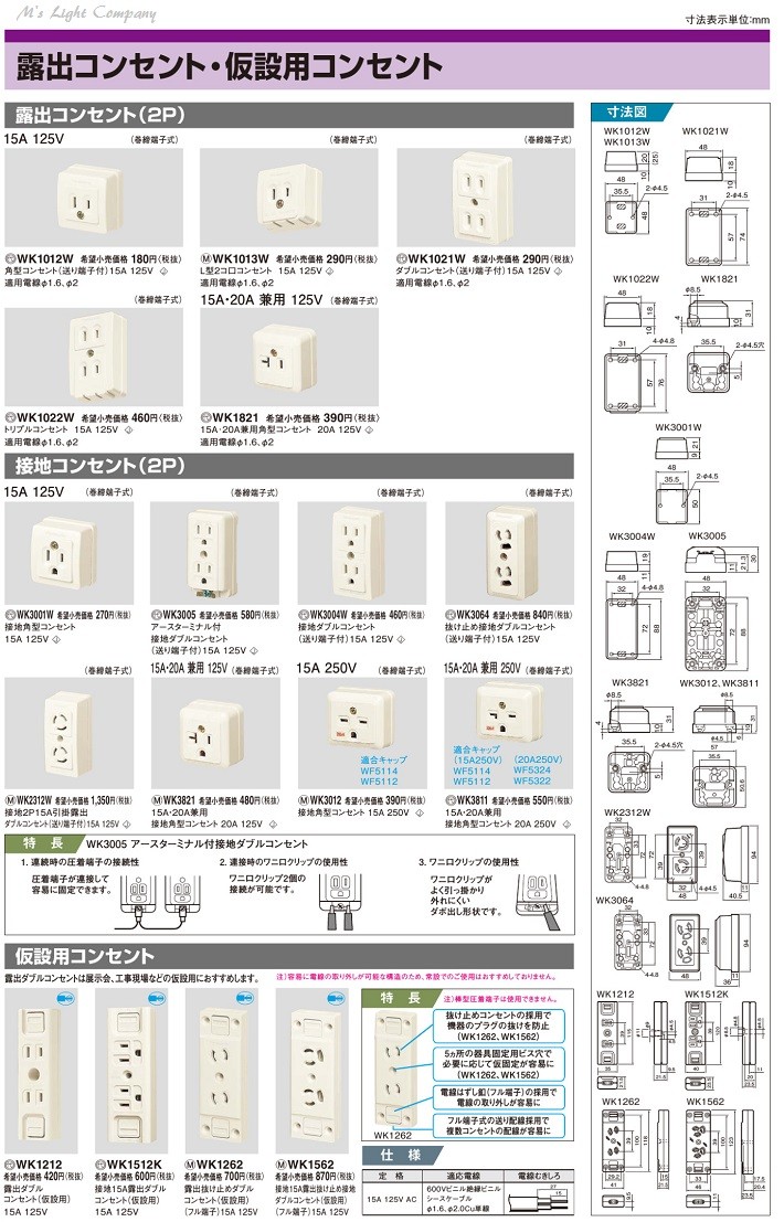 パナソニック WK1021W ダブルコンセント 送り端子付 15A 125V