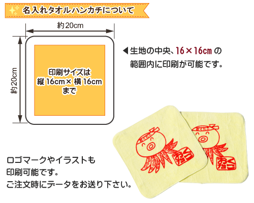 名入れ印刷範囲:最大16×16cm(タオルの中央)