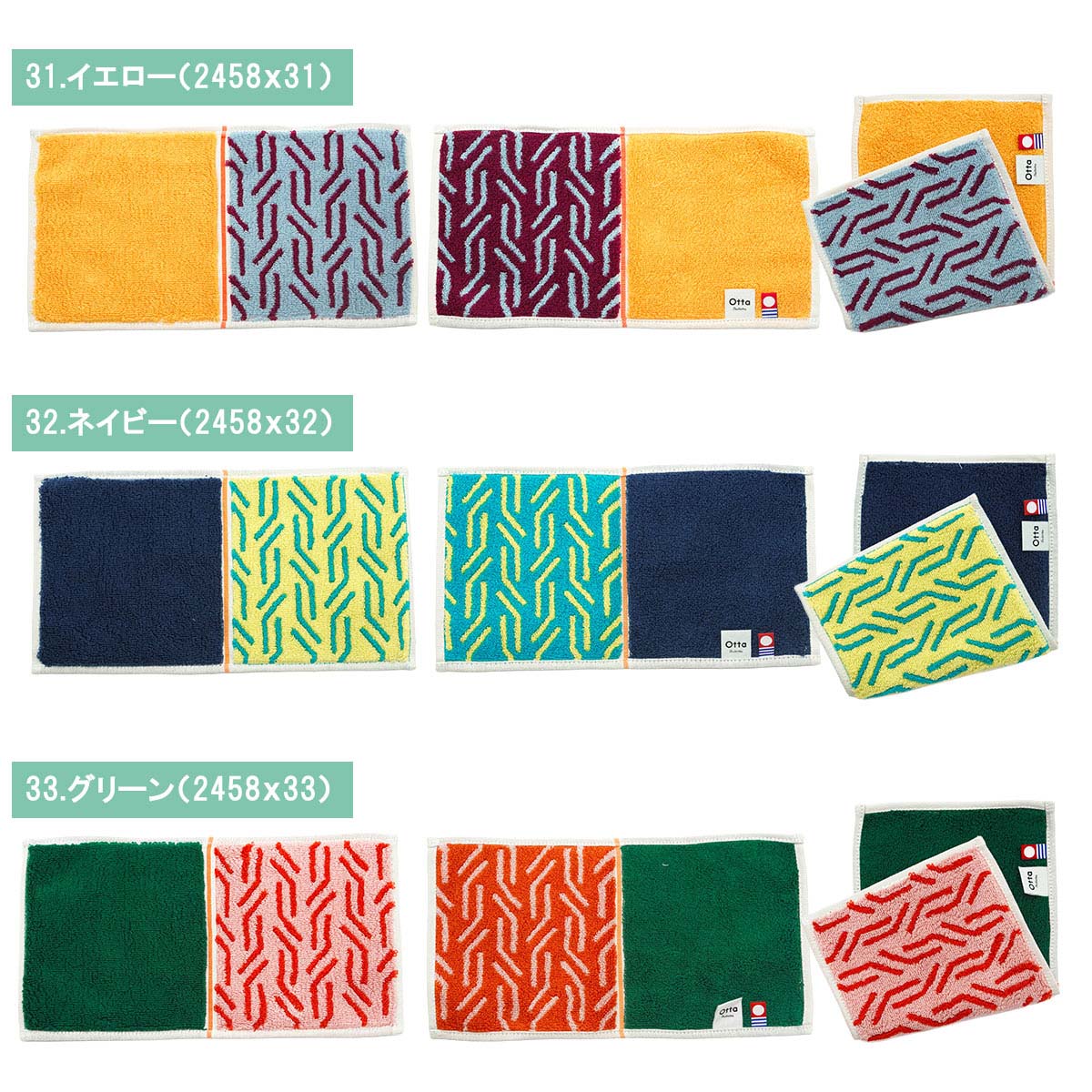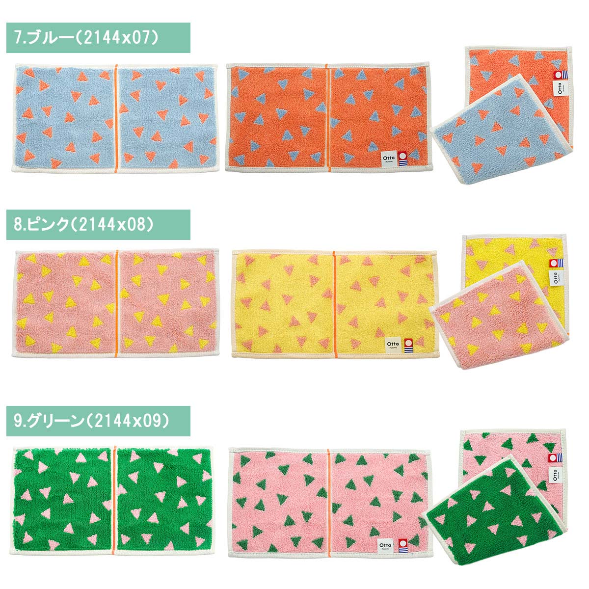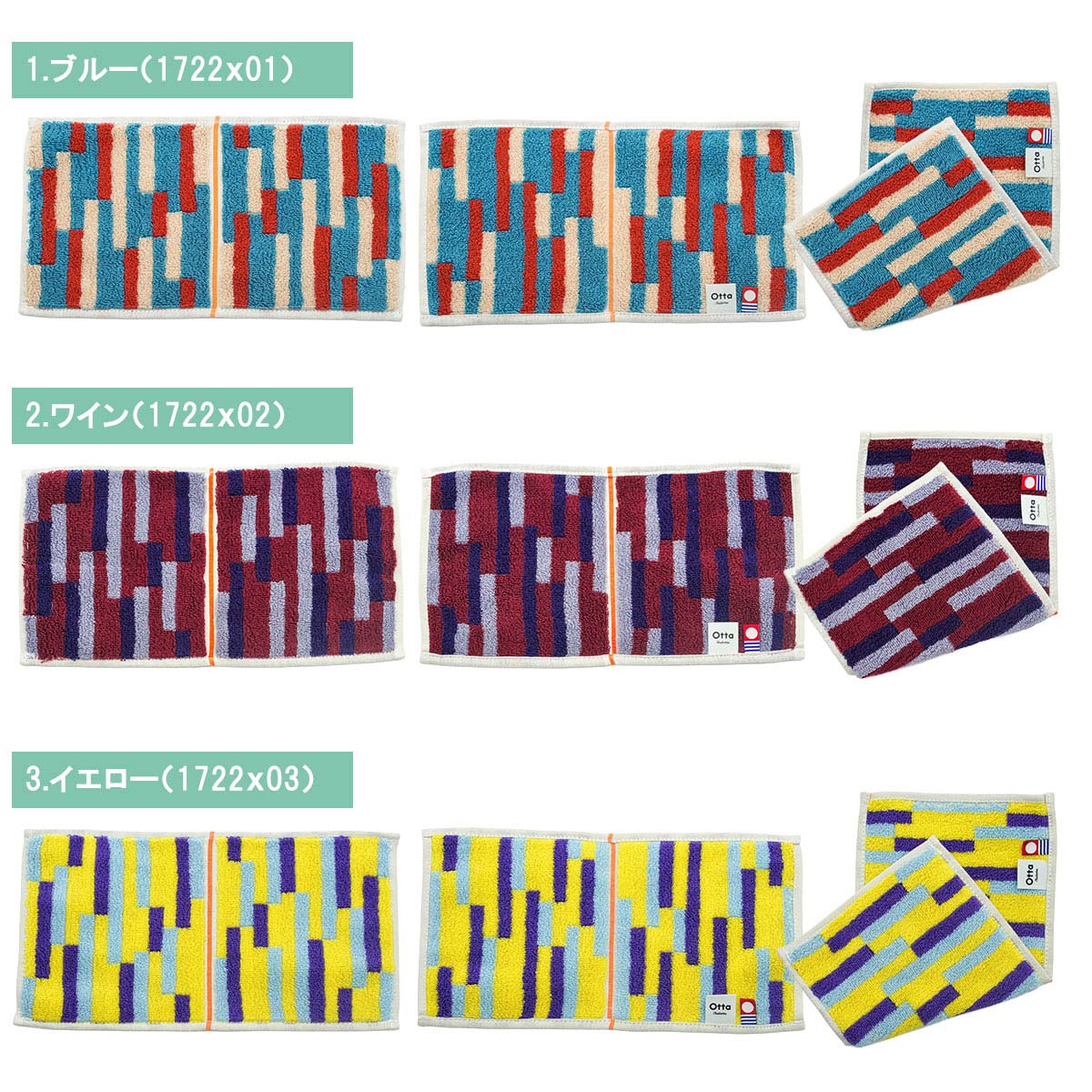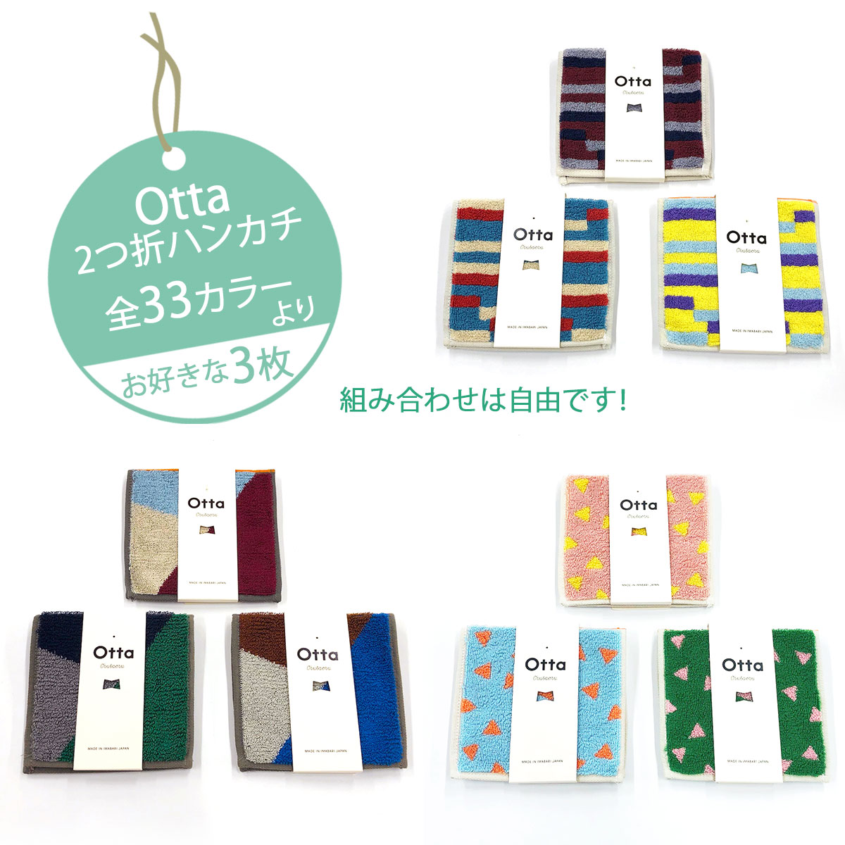 【サイズ表記】 Otta二つ折りタオルハンカチ 選べる3枚セット