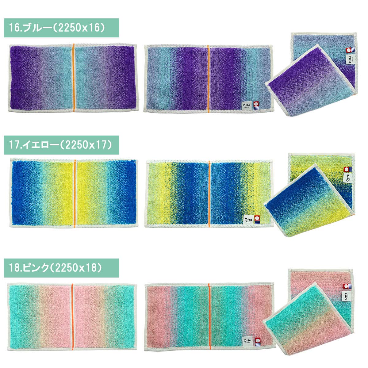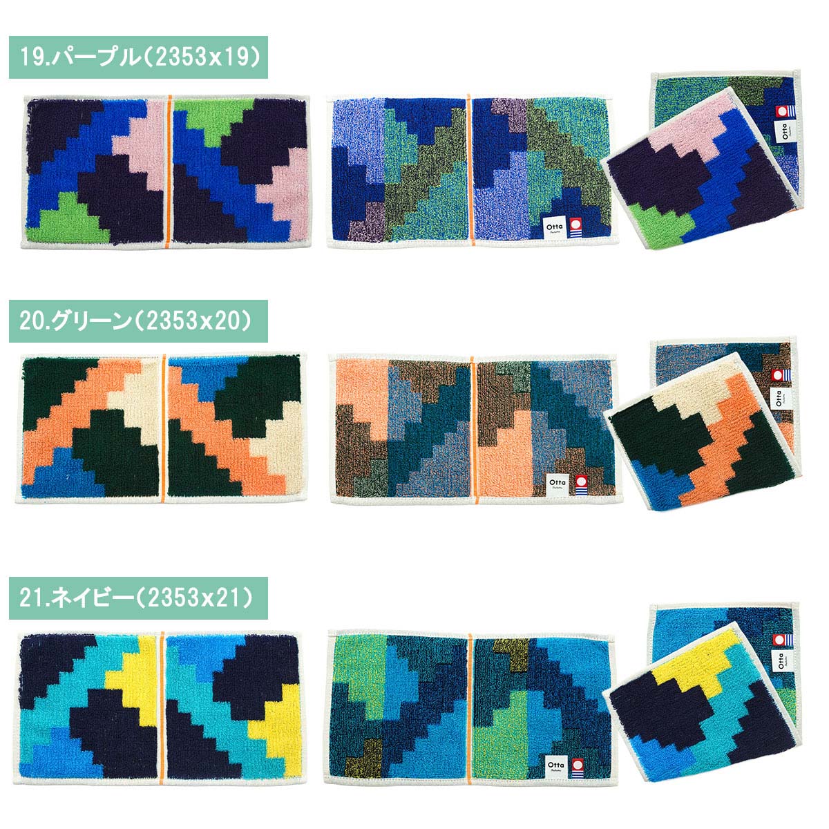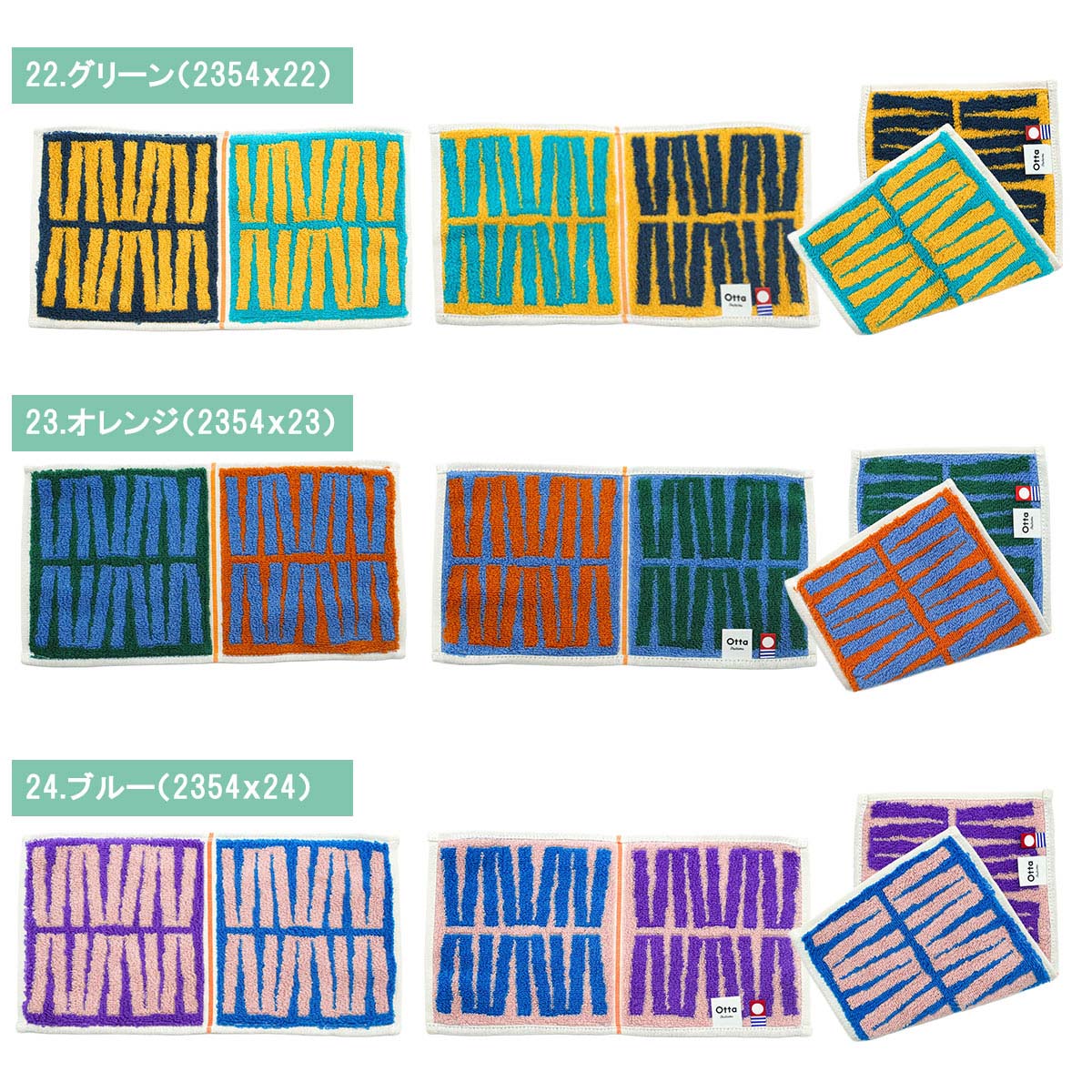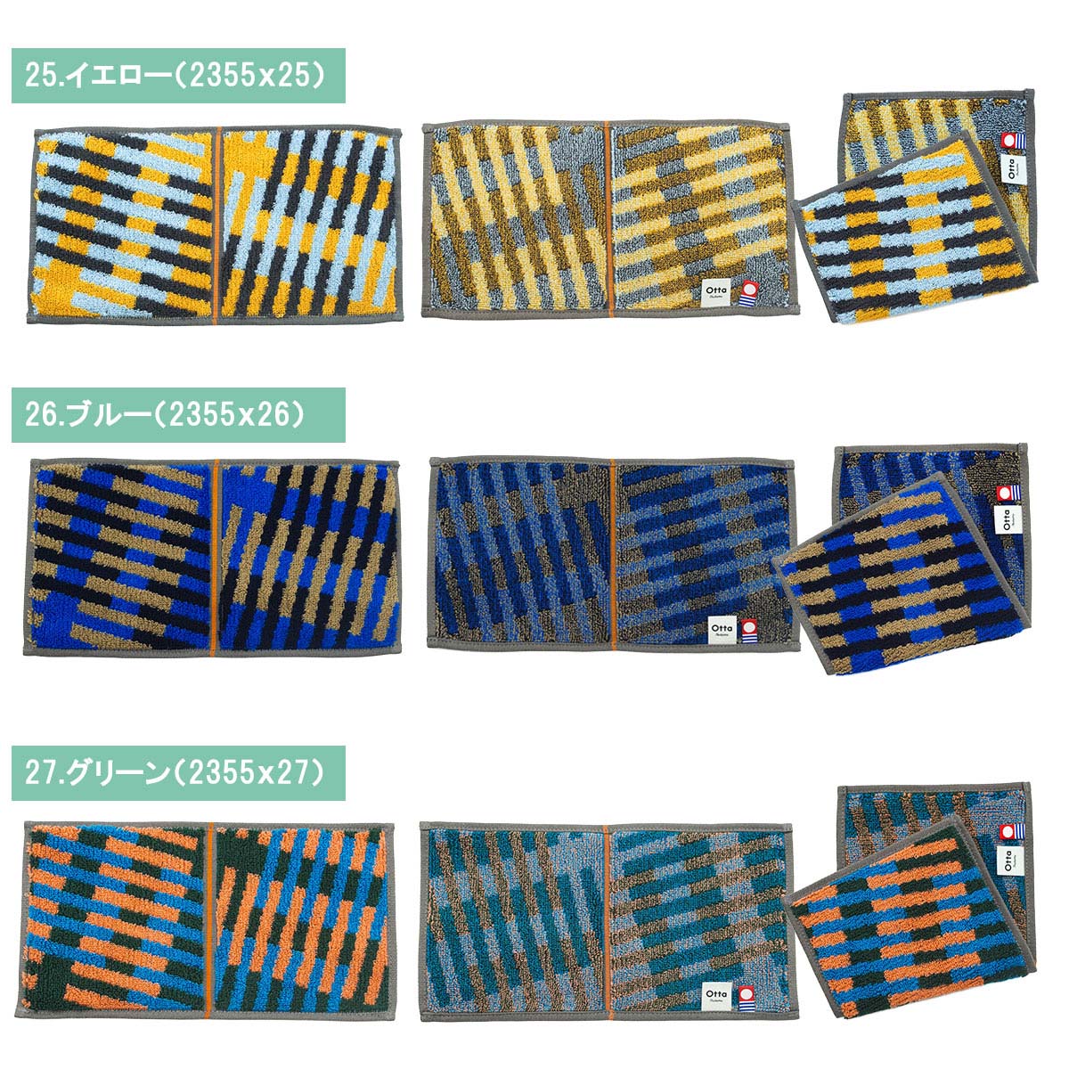 【サイズ表記】 Otta二つ折りタオルハンカチ 選べる3枚セット