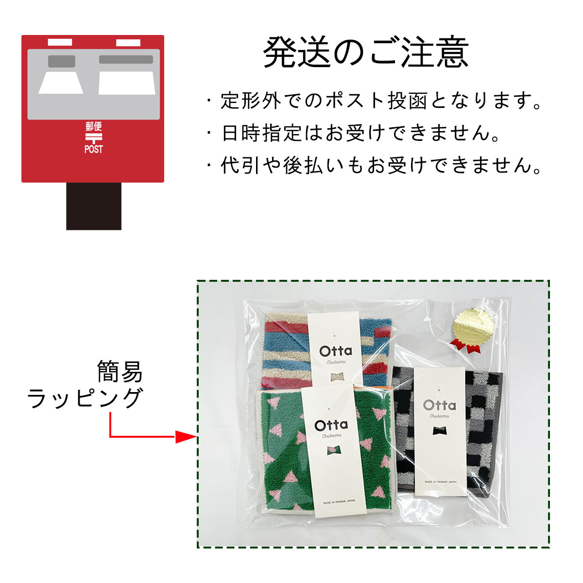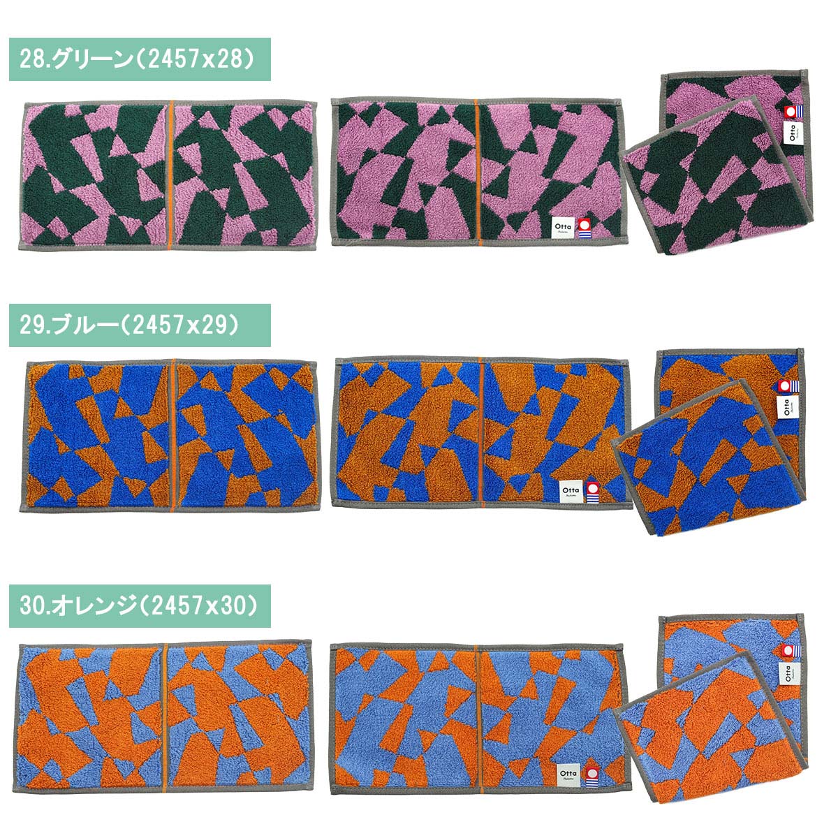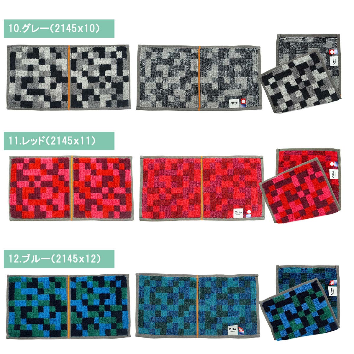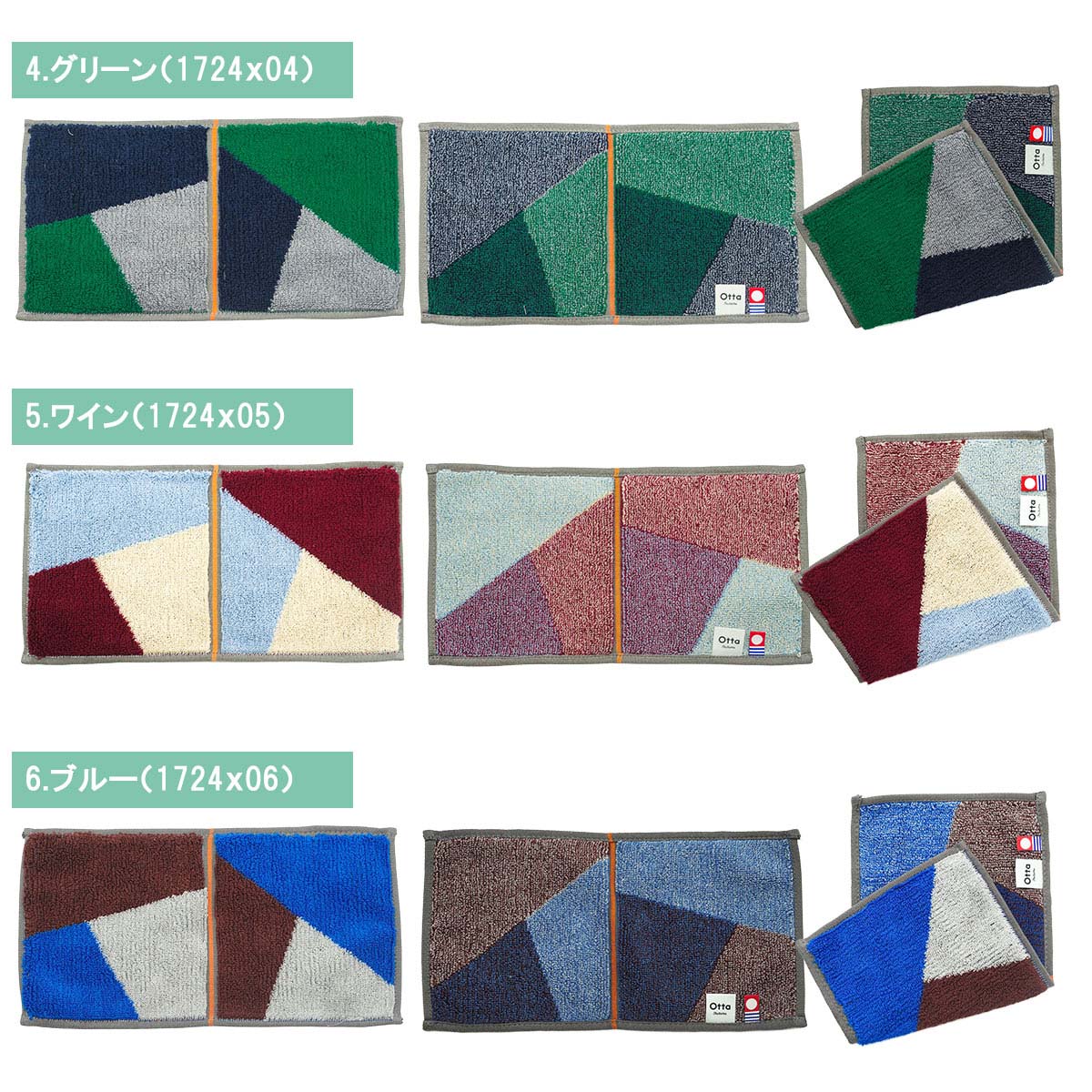 【サイズ表記】 Otta二つ折りタオルハンカチ 選べる3枚セット