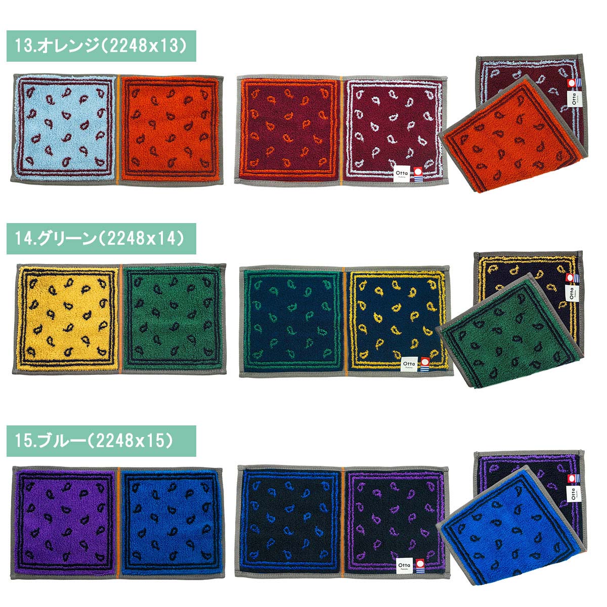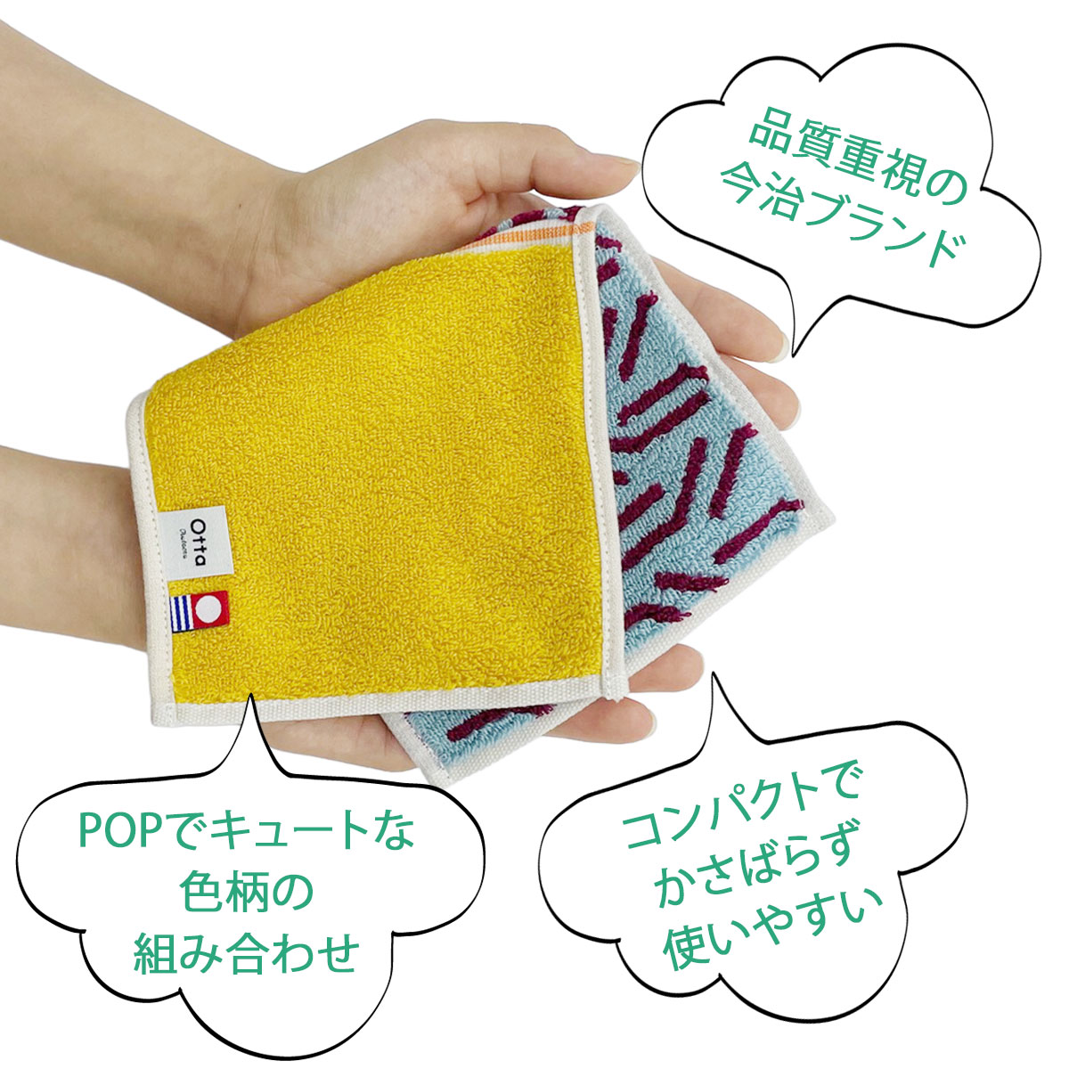 Otta 二つ折り 今治タオル ハンカチ 選べる3枚 ブランド 認定 オッタ 安心 日本製 タオル デイリー 子供 男性 女性25×12.5cm 贈り物 自分用 吸水力 拭き心地